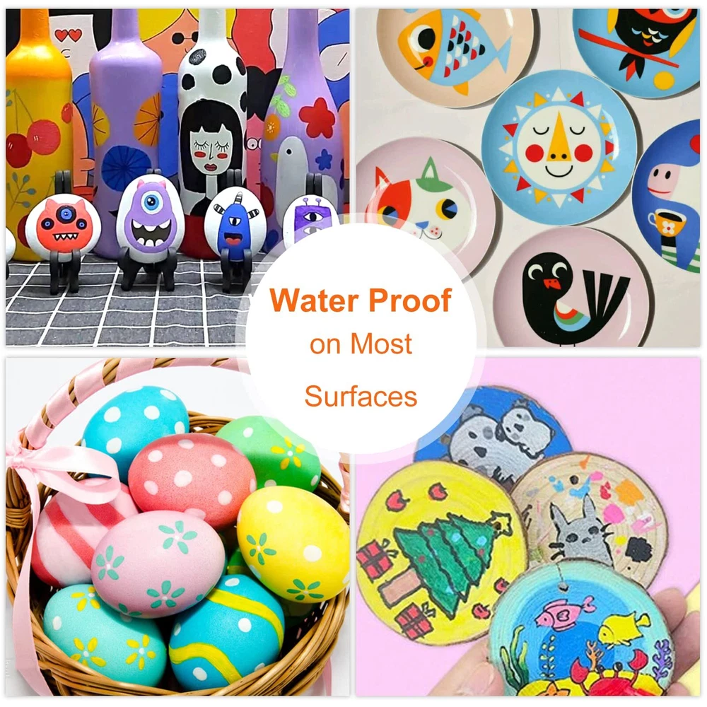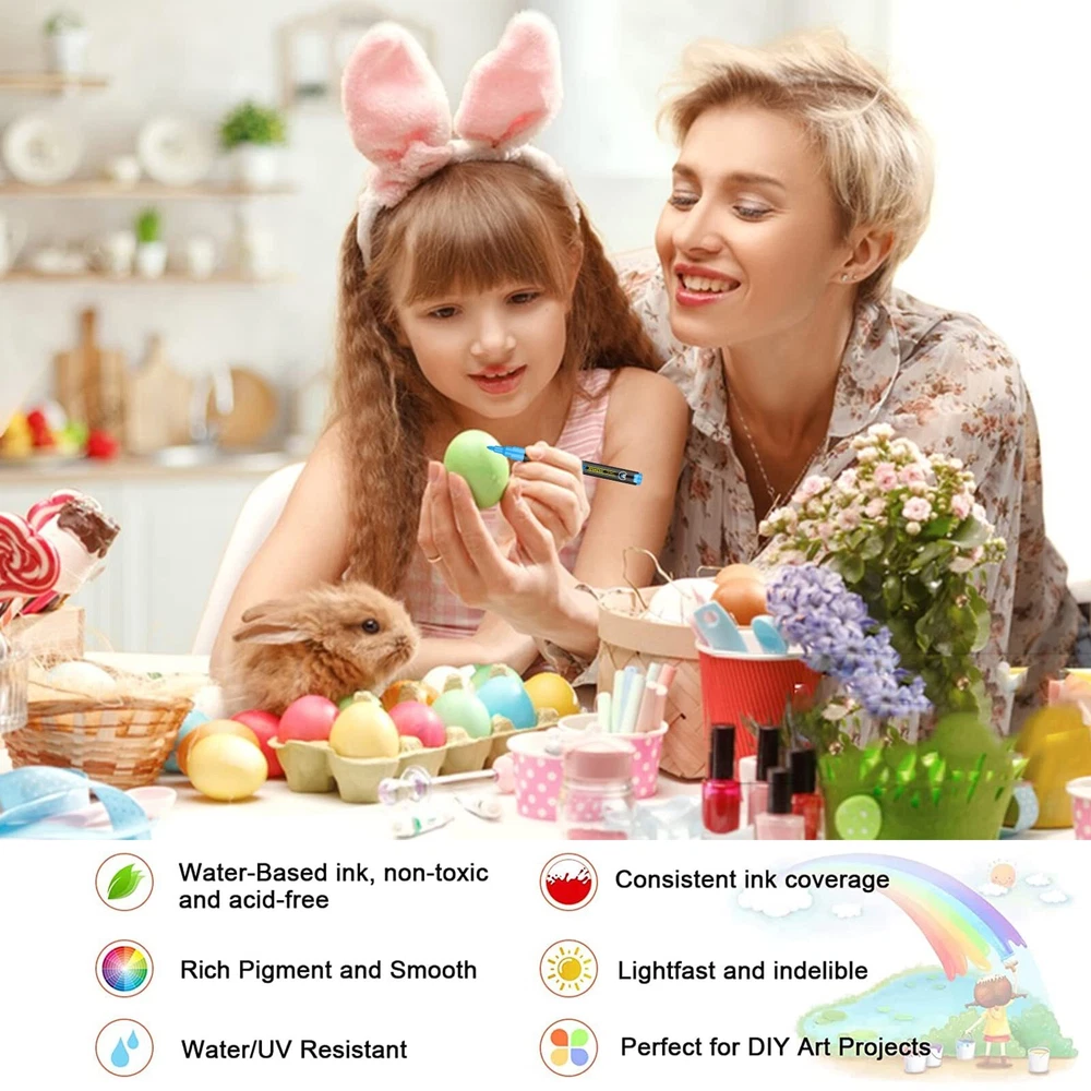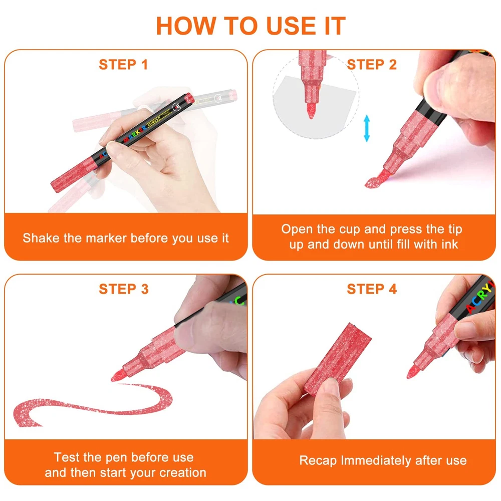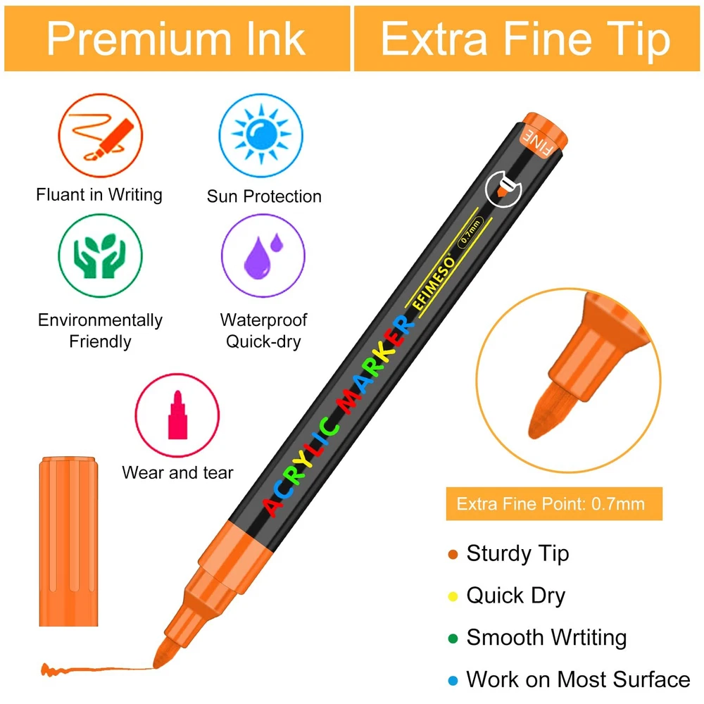 56 VIBRANT COLORS:Our marker pens are premium water-based ink,Quick-drying, Long-lasting, Not to Fade. Acrylic paint pens set come with 56 vibrant colors that Contain 5 unique type. Including GLITTER、METALLIC、NEON、PASTEL、CLASSIC. EXTRA FINE TIP: The acrylic paint pens equipped 0.7mm extre fine tip that suitable for outline Details、Blending、Coloring and Shading. SAFE & NON-TOXIC: Acrylic paint markers non-toxic and acid-resistant.Conforms to ASTM D-4236 and EN71 certificate. Suitable for kids, adults, students, artists, and professional. MULTI-SURFACE: Premiun acrylic paint markers use water-based ink. Apply to any surface, such as Canvas, Rock painting, Ceramic, Canvas , Wood, Easter eggs,Fabric, Stone, Metal, Plastic, Glass and more. Customer Satisfaction is Our Priority: We’re committed to providing excellent after-sales support. If you have any concerns or issues, please send us an email, and we’ll respond within 24 hours.