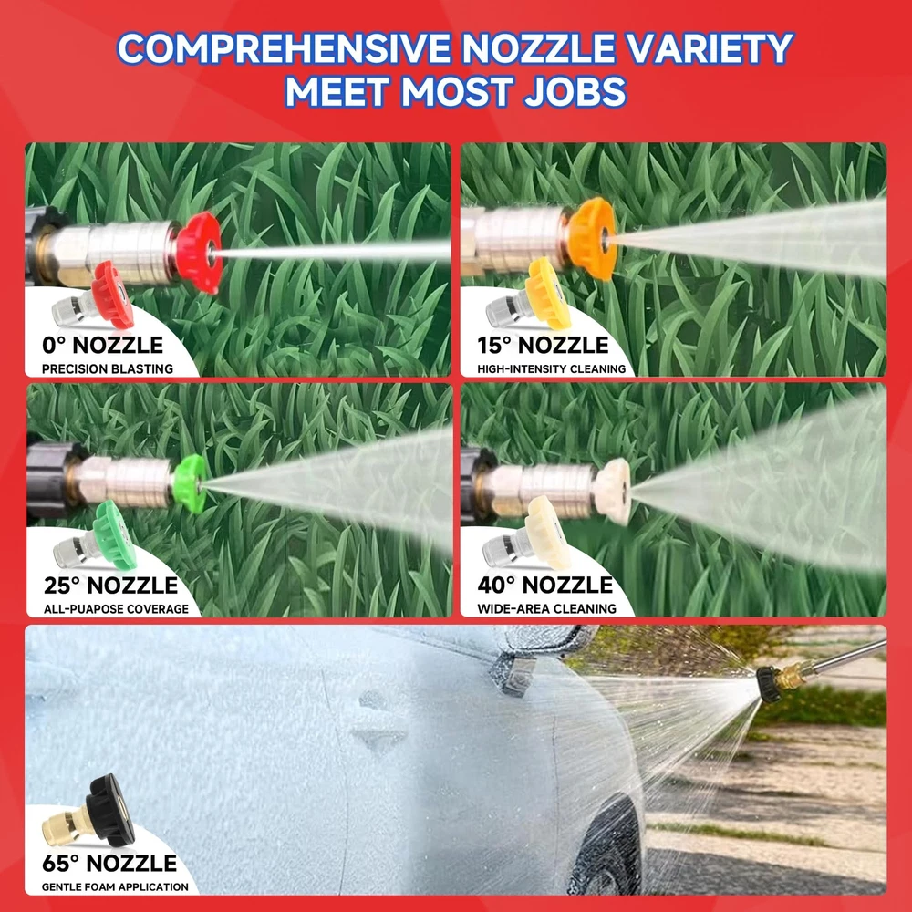 NIFUAL Pressure Washer Gun with Power Replacement Extension Wand,5 Sprayer Nozzle Tips, 3/8 Quick Connect Fittings,M22-15mm Adapter, Power Washer Gun Kit for Daily and Professional, 18 Inch,3300 PSI Product Details Brand: YETIANICAL Power Source: air_powered Color: Black Maximum Pressure: 3300 Pound per Square Inch Hose Length: 20 Inches Wand Length: 14 Inches Product Dimensions: 18 x 7 x 2 inches Item Weight: 2.9 pounds Manufacturer: YETIANICAL Country of Origin: China Item model number: YETIANICAL Pressure Washer Gun 1.[Top material] This Long Pressure gun is built to last with a high-quality ABS shell and brass core. The precision connections ensure a leak-free experience and the durable construction guarantees a long lifespan. Whether you're using it for personal or professional use, our pressure washer gun is up to the challenge.Say goodbye to flimsy and unreliable power washer guns 2.Warm Tips: Not fit gardenhoses, waterhose or your faucet directly. If pressure washer hose has M22 14mm fitting with 14mm inside diameter, please connect to hose directly. If hose has M22 15mm fitting with 15mm inside diameter, please connect the brass coupler between gun and hose. otherwise it may cause Leakage. 4.QUICK CONNECTOR: Pressure Washer Wand Extension has 1/4 Standard Quick Connector. Connects Any Accessories with 1/4 Plug to the Gun. Such as Nozzles Tips, Pivoting Coupler, Foam Cannon, Extension Wand, Surface Cleaner, Undercarriage Cleaner, Water Broom 5.PACKAGE INCLUDE: 1pcs Pressure Washer Gun, 1pcs 14 Inch Replacement Extension Wand , 5pcs Pressure Washer Nozzles, 1Set M22-14mm to 3/8" Quick Connect set , 1pcs M22 15mm Fitting