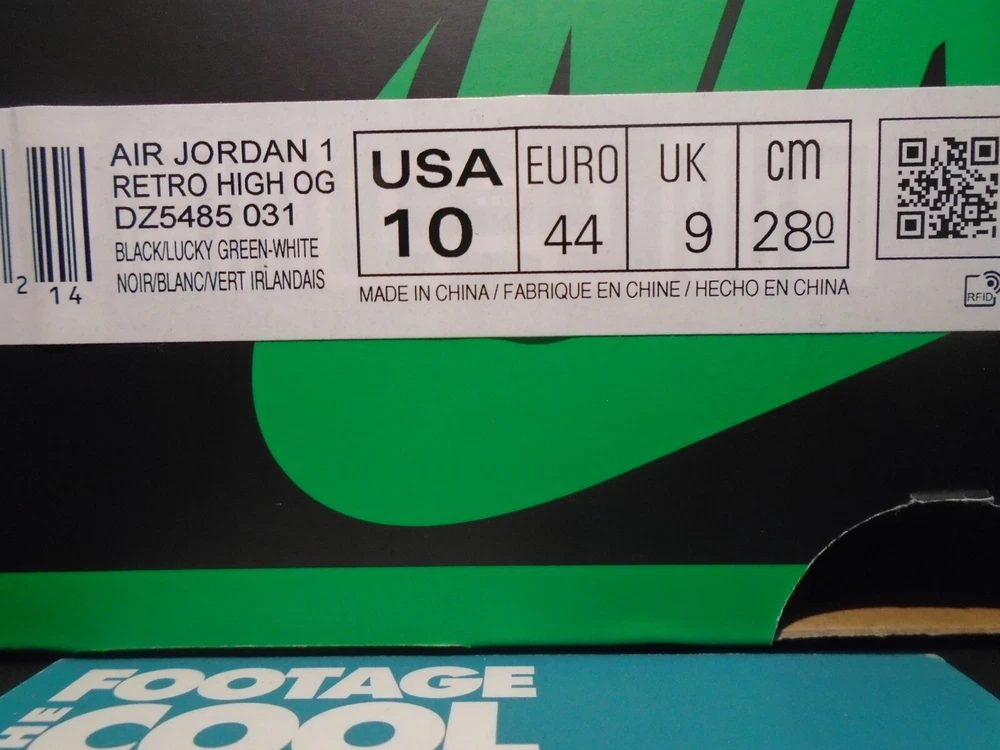 ITEM: 2023 Nike Air Jordan I Retro High OG (black/lucky green/white colorway) - Men's US size 10 STYLE NUMBER: DZ5485-031 CONDITION: Worn - Great overall condition INCLUDED ACCESSORIES: Original Box Extra Laces ADDITIONAL NOTES: This rare colorway is impossible to find in this size and condition. Guaranteed to be 100% AUTHENTIC MERCHANDISE or your money will be refunded in full. SATISFACTION IS 100% GUARANTEED PAYMENT METHODS: eBay Payment Methods Cash or Credit Card (if picked-up locally @ our shop in Orange, CA) FOOTAGE By THECOOLSHOESHINE! 2740 East Chapman Ave. Orange, CA 92869 SHIPPING & HANDLING: Double boxed via eBay shipping services with delivery confirmation. Please be sure to view all our other listings & contact us with any questions or concerns. Thank you!