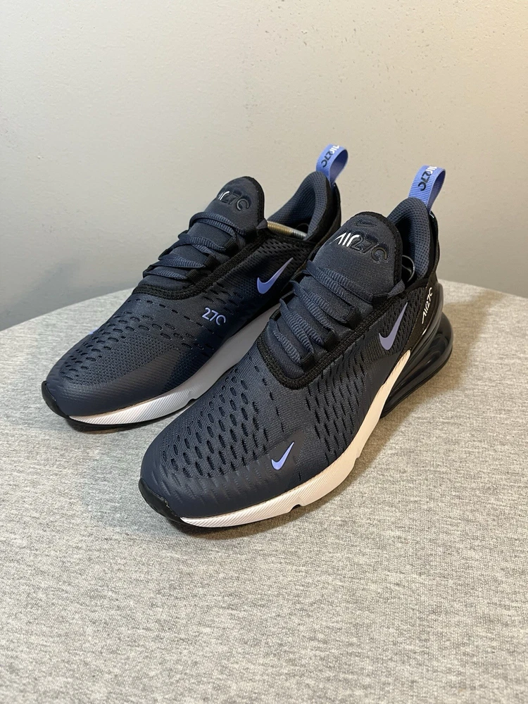 NIKE AIR MAX 270 THUNDER BLUE/BLACK/WHITE/ROYAL PULSE Shoe SIZE Youth 7 & Women's 8.5 943345 408 New with no box. We always carefully package and ship right away. Reach out with any questions. Youth 7 & Women's 8.5 The pair in our photos is the exact pair you are purchasing. Make sure to follow us. We post shoes often and offer bundle pricing.