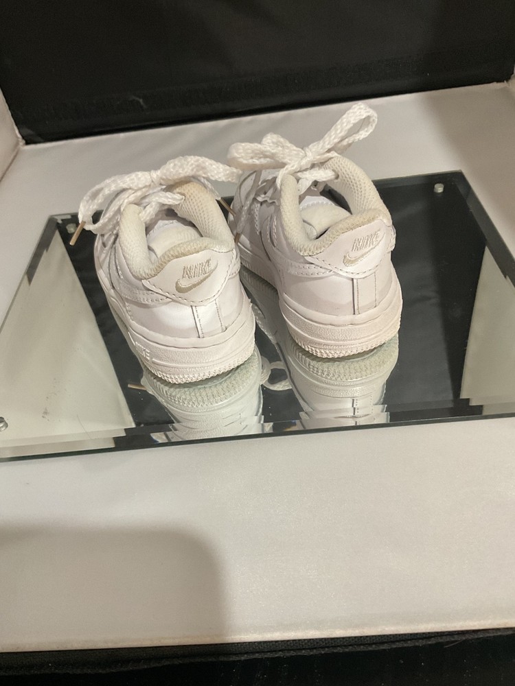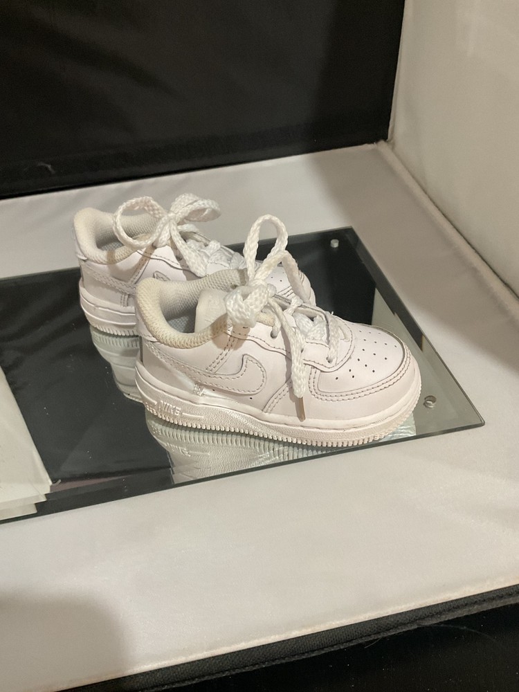 The NIKE Air Force 1 white sneakers for boys and girls in toddler size 5c are a stylish and versatile addition to any young child's wardrobe. Made with high-quality leather, these athletic shoes feature the iconic Nike Air Force 1 design with a classic white color that matches any outfit. It is easy to put on and comfortable to wear, perfect for active toddlers who love to explore and play. The unisex design makes them suitable for both boys and girls, and the durable construction ensures they will last for a long time.