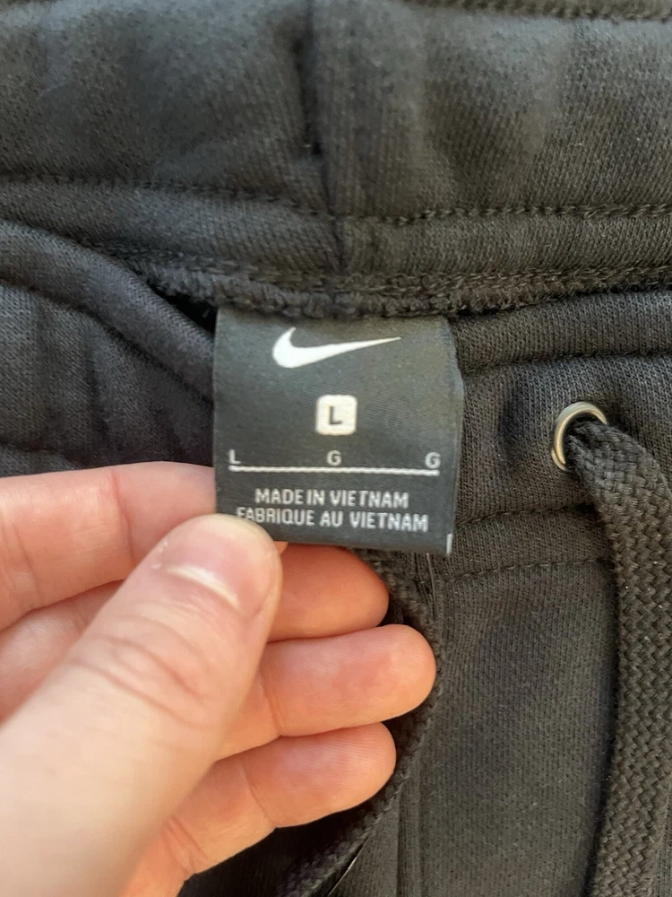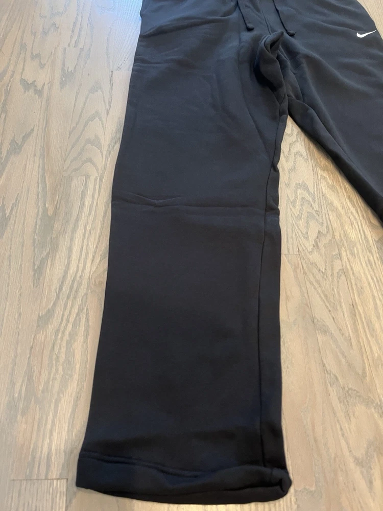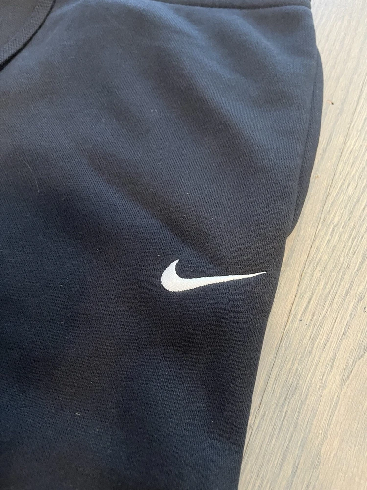 Elevate your activewear game with these Nike Sports Wear Club sweatpants. The elastic waistband and drawstring closure ensure a comfortable fit, while the pockets provide ample storage space. These solid black sweatpants are made from polyester fleece and feature a regular fit, making them perfect for a range of activities, including beach volleyball, baseball, cross training, dance, driving, CrossFit, basketball, bodybuilding, and cheerleading. the waist size is large. These designer sweatpants are a must-have for any Nike fan and are perfect for staying comfortable and stylish during any activity.