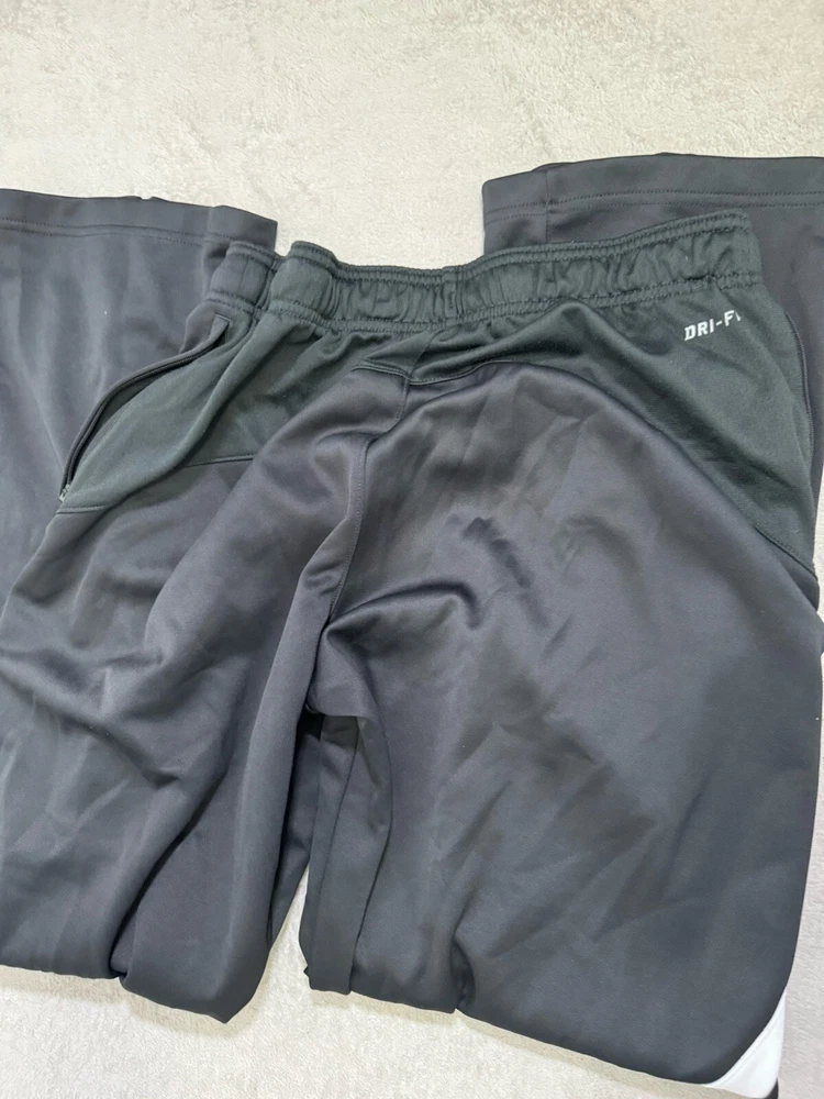 Elevate your activewear game with these Nike Dri-FIT basketball training pants in a stylish gray and white colorway. These pants feature an elastic waist and adjustable drawstring closure for a comfortable fit during any performance or activity, whether it be cycling, cross training, running, or basketball. Made with 100% polyester and Dri-Fit fabric type, these pants are perfect for any season, whether it be winter, summer, fall, or spring. With a classic fit and straight leg style, these track pants are suitable for men of all sizes and occasions, whether it be for travel, workwear, or activewear. These pants are part of the Nike Dri-FIT product line and are made in Vietnam. Get ready to crush your fitness goals with these versatile and comfortable activewear pants.
