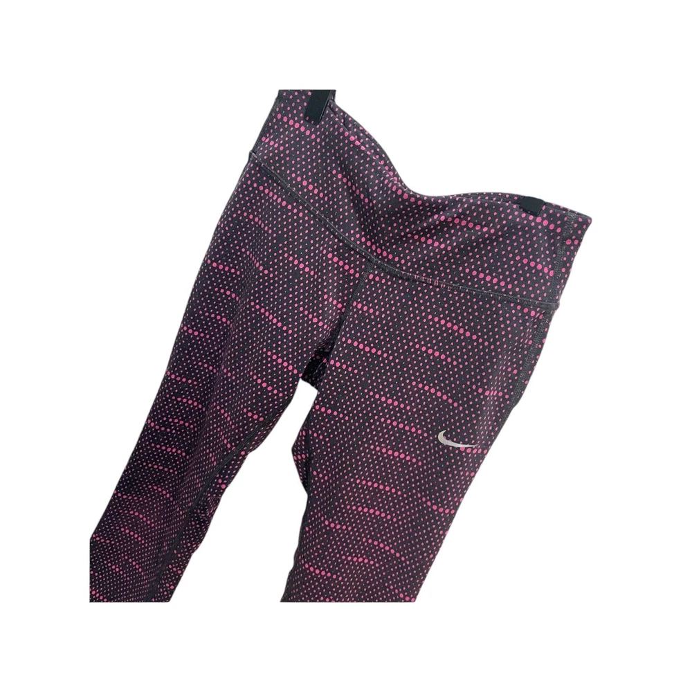 These Nike DRI-FIT Women's Capri Yoga Workout Pants in geometric pink and black are size XS with a waist size of 24 inches. Made of polyester, spandex, and cotton, these leggings feature an elastic waist and have a 21-inch inseam. Suitable for activewear occasions, they are machine washable and are ideal for activities like gym training, yoga, and dance in all seasons. in good condition inseam 21" rise 7" waist across 13" All Measurements Are Approximate Please email us with any questions! ** LIKE THE ITEM BUT NOT THE PRICE, REASONABLE OFFERS ACCEPTED