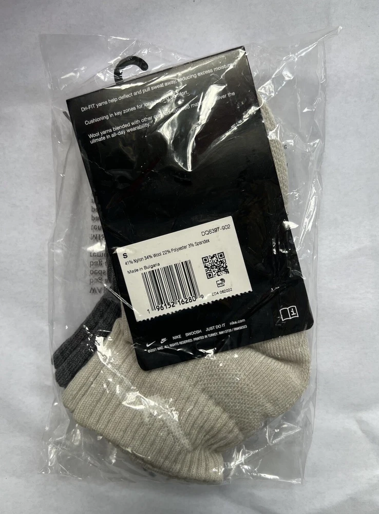 NIKE Everyday WOOL BLEND Ankle SOCKS 2 PAIR Gray & Tan DQ6397-902 Small New Tags