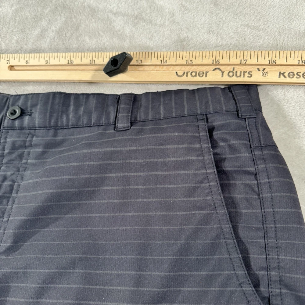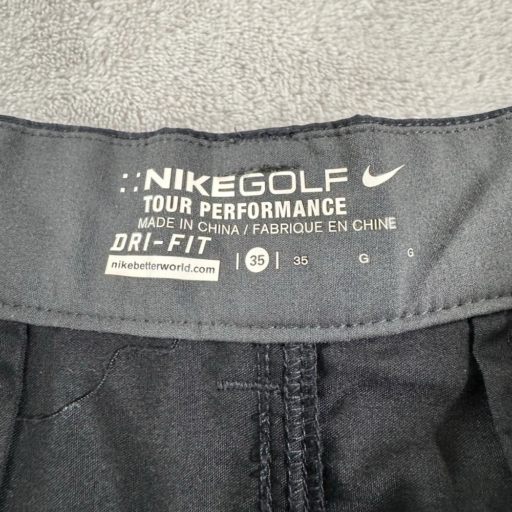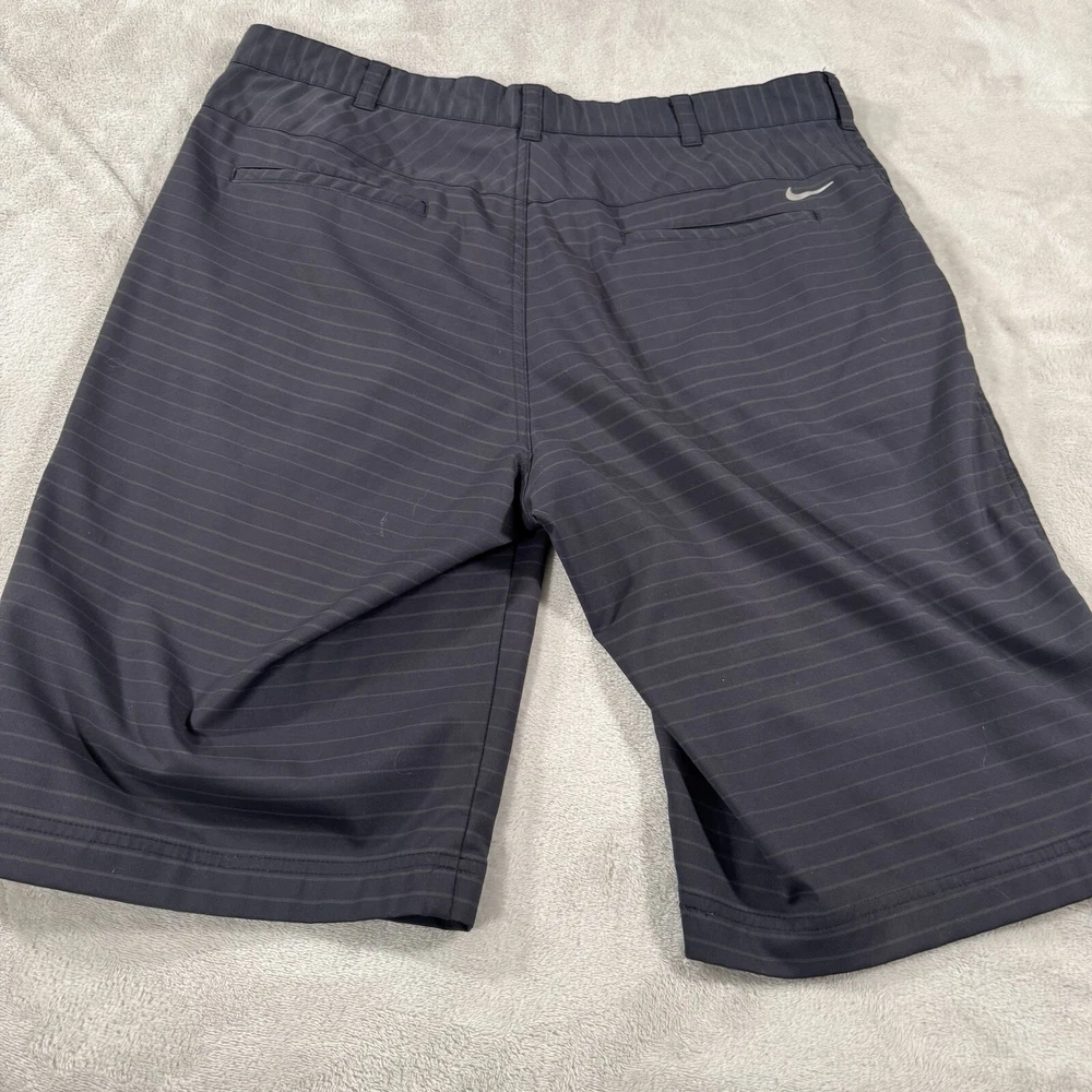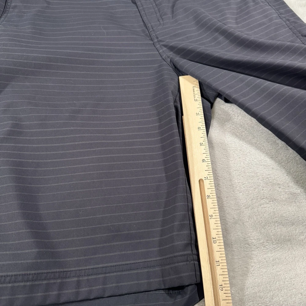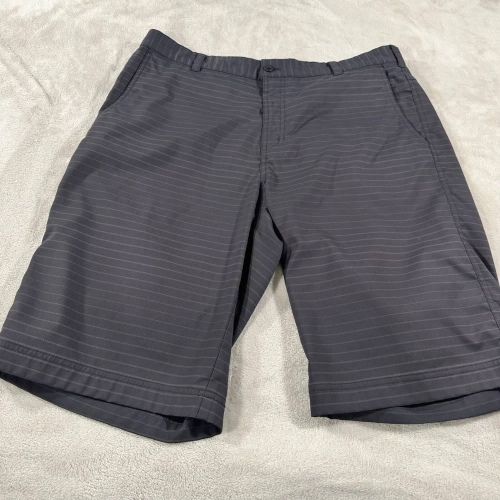 Elevate your golf game with these Nike Golf 35 Tour Performance Dri-Fit Chino Shorts. The black and white striped design adds a touch of style to your sporty wardrobe. The microfiber fabric type and polyester and spandex material make them lightweight and stretchy, providing comfort and flexibility on the course. With UV protection, moisture-wicking, and quick-dry features, these shorts are perfect for travel and casual occasions. The flat front and pocket design add a classic touch to this sporty piece. Get ready to hit the course with these stylish and functional shorts.