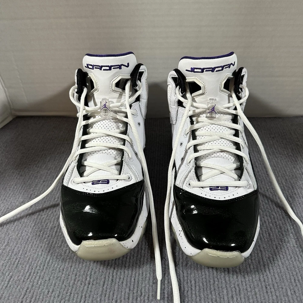 Introducing the Nike Jordan B Loyal White Court Purple Men's Lifestyle Shoes, model number 315317-115. These sneakers are perfect for casual occasions and are designed with a mid-top shoe shaft style. The shoes have a synthetic upper material and a fabric lining material, with a medium shoe width. They are 100% authentic and guaranteed, making them a reliable choice for anyone looking for a quality pair of athletic shoes. The shoes feature a rubber outsole and cleat type, with a white color and solid pattern. They are suitable for basketball and are a part of the Jordan product line. These sneakers are made in China and are a great addition to any shoe collection. Please message me if you have any questions Thanks for looking 😊