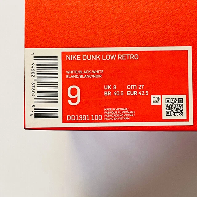 Item Title NIKE Men 9.0US Below Dunk Low Retro Panda White Black Domestic Tag Payment Supports managed payments Please pay within 5 days after auction is finished. About Us We are located in Japan. It's our pleasure to make you happy by proposing our recommend item. If you have any questions or request about items, please feel free to ask us. International Buyers - Please Note: -Import duties, taxes, and charges are not included in the item price or shipping charges. These charges are the buyer's responsibility. -Please check with your country's customs office to determine what these additional costs will be prior to bidding/buying. -These charges are normally collected by the delivering freight (shipping) company or when you pick the item up - do not confuse them for additional shipping charges. -We do not mark merchandise values below value or mark items as - gifts - The US and International government regulations prohibit such behavior. Thank you for your understanding.