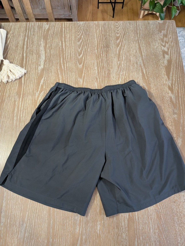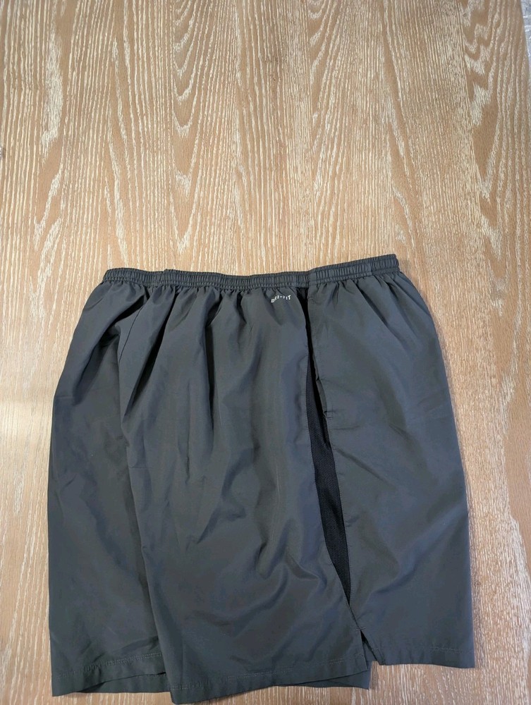 The NIKE Men's 2XL Dri Fit Challenger 9" Brief-Lined Running Shorts in Gray/Black are designed for active men looking for comfortable and performance-driven activewear. Made from polyester with a blended fabric type, these shorts feature a solid gray color, drawstring closure, and a 9-inch inseam. The Nike Dri-FIT technology ensures moisture-wicking capabilities, making them suitable for various activities such as gym training, cross-training, and running. With a regular fit and lined interior, these shorts are perfect for all seasons and come in a size 2XL with a 38-inch waist size.