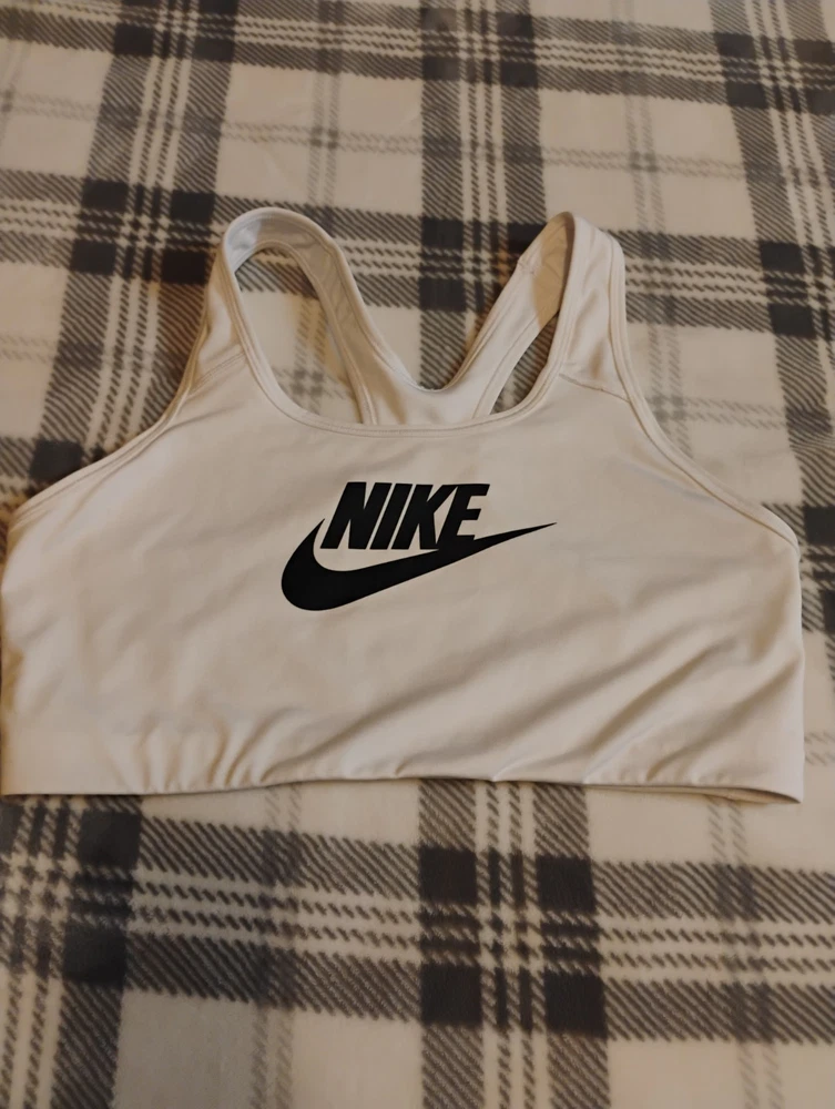 NIKE SIZE XL Sports Bra Dri-Fit Training High Top Racerback Stretch White