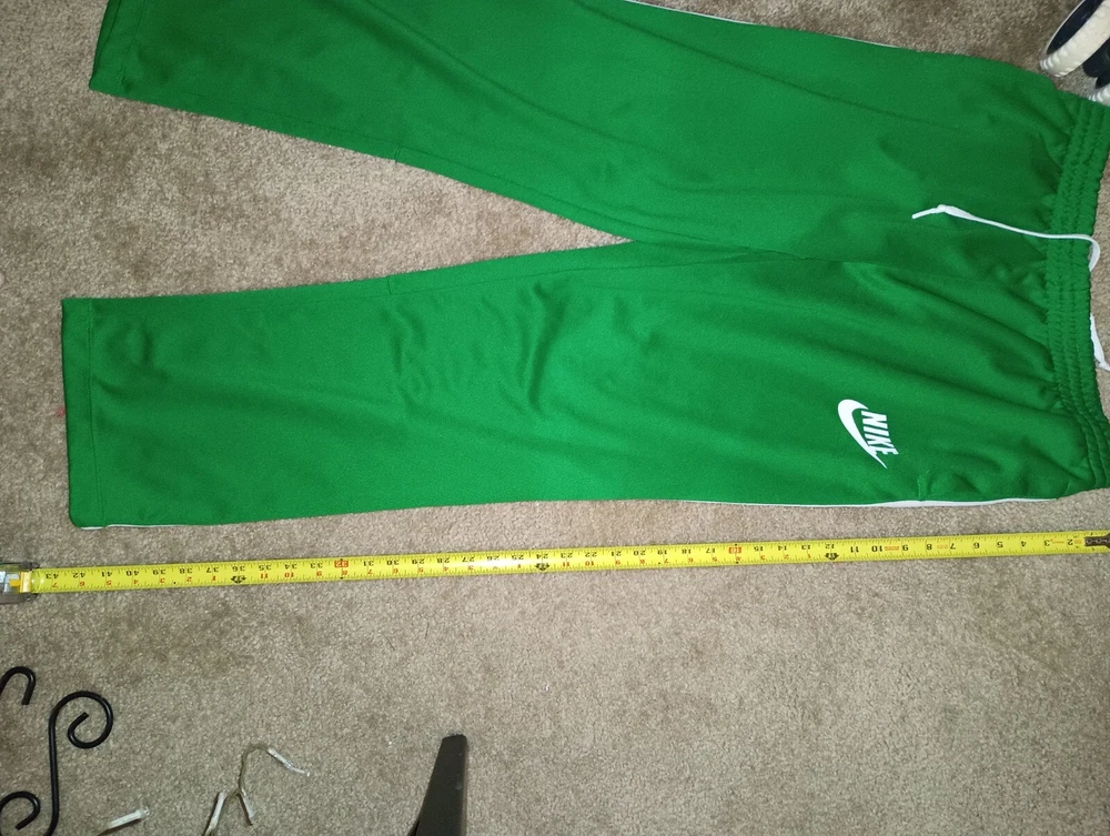 Character: NA Waist Size: 38 in Size: XL Inseam: 31 in Fit: Athletic Country/Region of Manufacture: Unknown Color: White Style: Jogger Performance/Activity: Basketball Theme: Retro Size Type: Regular Model: SPORTSWEAR Product Line: Nike Department: Men Material: 100% Polyester Leg Style: Wide-Leg Features: Elastic Waist, Pockets Pattern: Solid Compression Area: Waist Brand: Nike Vintage: No Closure: Pull On Type: Pants Fabric Type: Blended Fabric Occasion: Activewear
