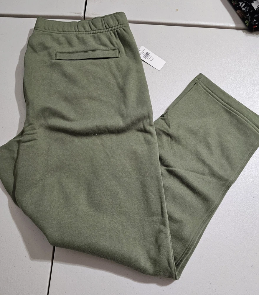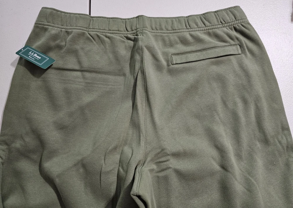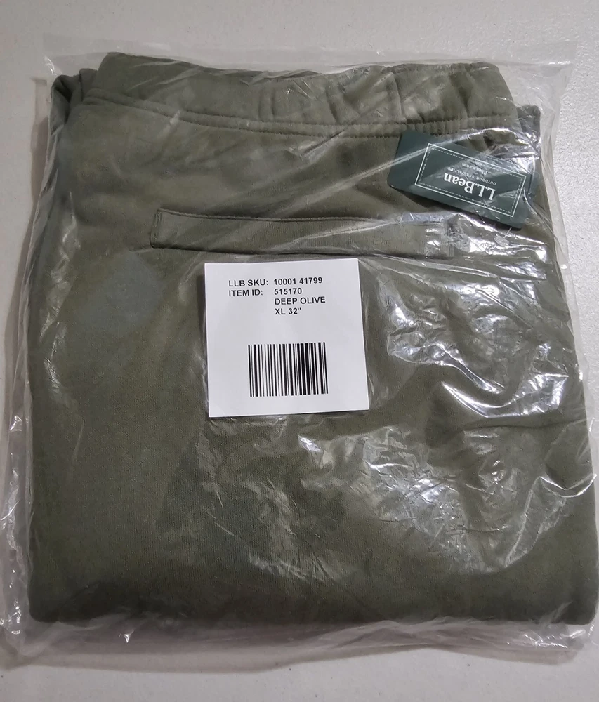 If you especially want something comfortable to wear, these are it. They are so soft! Men's LL Bean XL Deep Olive sweatpants with side pockets and elastic with drawstring waist. The legs are just straight at the bottom, with no zipper or elastic. 60% Cotton 40% polyester New in package. I removed it from the package to measure and take pictures. Measurements: Waist : 36" Inseam: 32" Measured lying flat. Waist is elastic with drawstring, so it can accommodate a little range in sizing. Returns accepted within 30 days in same condition as purchased. Buyer pays return shipping. Shipping: I'm packing this tightly in a Priority Mail to save on shipping.