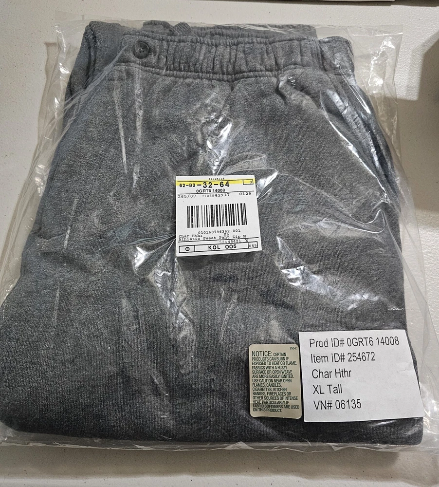 Men's LL Bean XL TALL Charcoal Heather sweatpants with zipper and button closure and zipper at ankles. New in package. I removed from package to measure and take pictures. Waist: 34" Inseam: 33" Returns accepted within 30 days in same condition as purchased. Buyer pays return shipping. Shipping USPS ground.