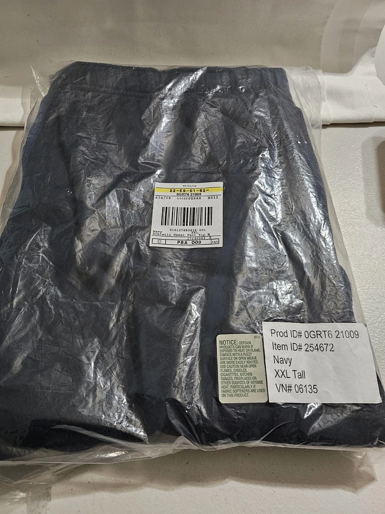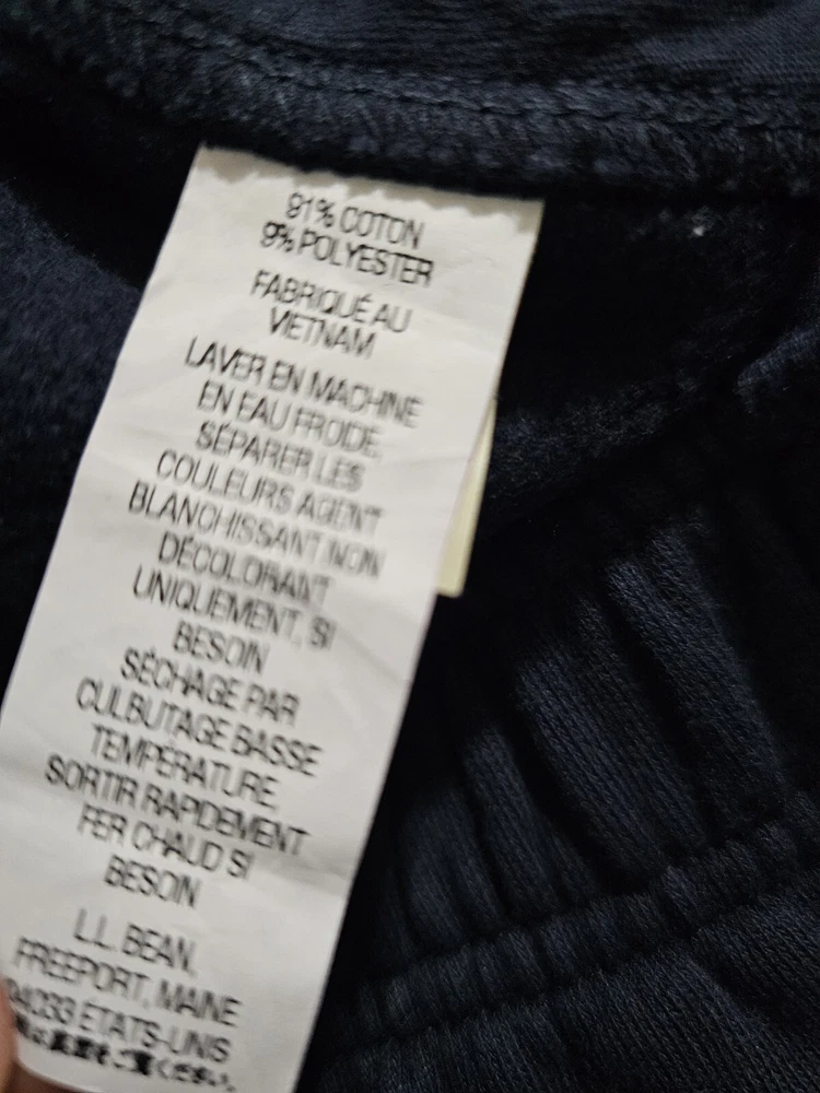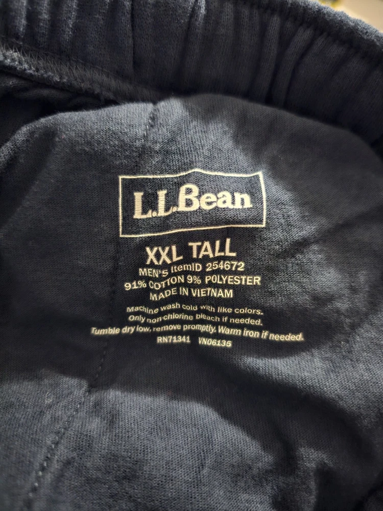 Men's LL Bean XXL TALL Navy sweatpants with zipper and button closure and zipper at ankles. New in package. I removed from package to measure and take pictures. Measurements: Measured lying flat. Waist has several inches to expand past the 40" measured. Waist: 40" Inseam: 32" (I had this listed with a 35" Inseam, but I remeasured at 32") Returns accepted within 30 days in same condition as purchased. Buyer pays return shipping. Shipping: I will pack this tightly in a Priority Mail envelope to save money from the ground advantage I had listed.