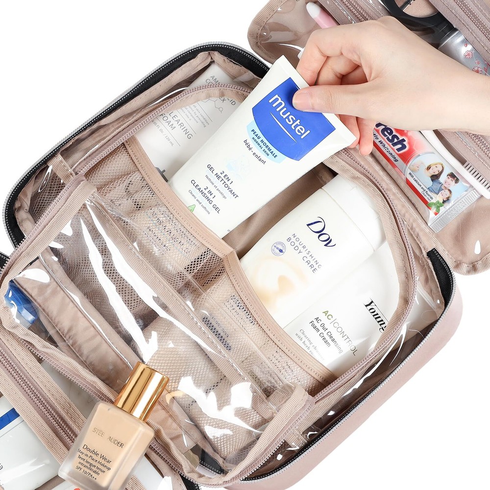 NISHEL Travel Toiletry Bag for women, Portable Hanging Organizer for Travel-Size Features: COMPACT-SIZED FOR TRAVEL-SIZED ESSENTIALS - 10.4 x 4.5 x 8 inches【6.1L】. The space-efficient hanging toiletry container can hold all your travel essentials: cosmetics, travel-sized shampoo, Conditioner, and Skin care products THOUGHTFUL INTERIOR ORGANIZATION SYSTEM - Unfolds to feature 4 separate compartments for maximum organization. Easily compacts down to original size to take up minimal packing space SPEND LESS TIME AT SECURITY CHECKS - Always giving total visibility and access to your toiletries. Transparent window for easy security screening ORGANIZATION IS THE KEY TO A HAPPY TRAVEL - Store your toiletries and cosmetics in the elasticated pockets for maximum organization, or in the zippered compartment for additional safekeeping ESSENTIAL ARRANGEMENT - A hanger to hook allows you to hang the toiletry bag almost anywhere for easy accessibility. Quick-access front pocket for secure storage Features: COMPACT-SIZED FOR TRAVEL-SIZED ESSENTIALS - 10.4 x 4.5 x 8 inches【6.1L】. The space-efficient hanging toiletry container can hold all your travel essentials: cosmetics, travel-sized shampoo, Conditioner, and Skin care products THOUGHTFUL INTERIOR ORGANIZATION SYSTEM - Unfolds to feature 4 separate compartments for maximum organization. Easily compacts down to original size to take up minimal packing space SPEND LESS TIME AT SECURITY CHECKS - Always giving total visibility and access to your toiletries. Transparent window for easy security screening ORGANIZATION IS THE KEY TO A HAPPY TRAVEL - Store your toiletries and cosmetics in the elasticated pockets for maximum organization, or in the zippered compartment for additional safekeeping ESSENTIAL ARRANGEMENT - A hanger to hook allows you to hang the toiletry bag almost anywhere for easy accessibility. Quick-access front pocket for secure storage eBay integration by