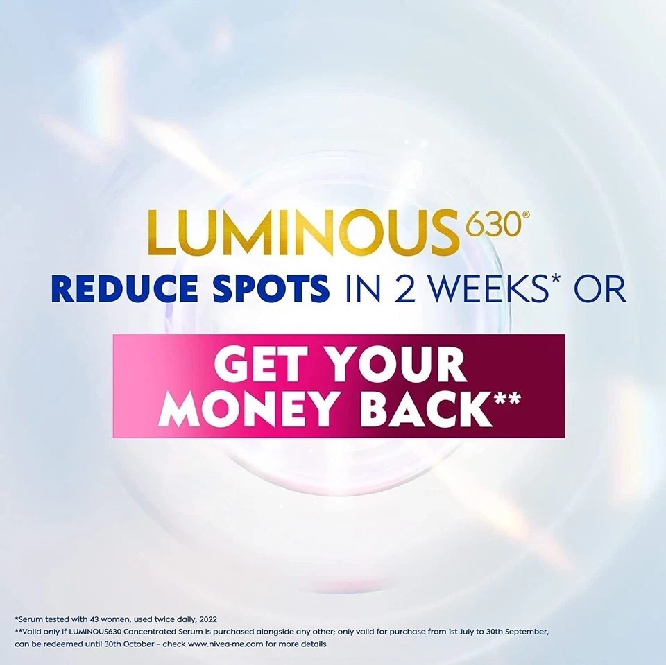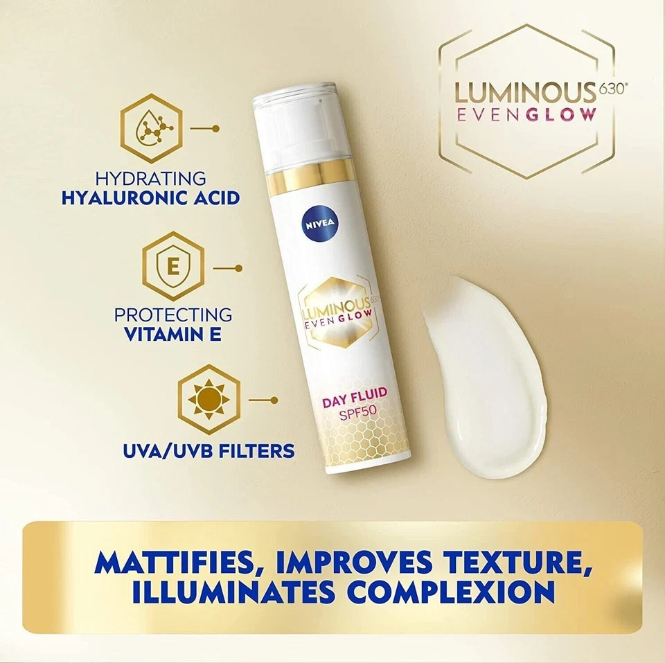NIVEA LUMINOUS 630 EVEN GLOW Anti Dark Spot Face Fluid SPF 50, UVA & UVB Sun Protection, Spotless Even Skin, Hydrating Hyaluronic Acid & Vitamin E, 40ml Free Shipping World Wide About this item Enriched With Patented Luminous630 Ingredient, Hyaluronic Acid, Vitamin E And Spf50 Acts On Existing Pigmentation To Lighten Dark Spots And Reduce Their Size Balances New Melanin Production To Prevent The Appearance Of New Spots For Even & Luminous Skin, With A Lightweight Texture Suitable For Pregnant Women, Gentle To The Skin And Recommended For All Skin Types Including Sensitive Skin Apply Morning On Cleansed Face A Max. Of 4 Times A Day After The Luminous630 Serum Shipping All item will be shipped directly from MALAYSIA ü Registered Post Item delivered will required signatures at the time of receiving. ü Dispatched items tracking number will be updated within 24 hrs. Of the dispatch. ü All items ordered will be dispatched within 48 hour after receiving the clear payment. ü All items require 15 to 30 business days to arrive at the given address. ü Please do not order if you are not willing to wait for above given time. ü All our items will be shipped worldwide, In any case the item is been stuck to the buyers custom department the buyer has to pay the custom charges for the receiving of the item. ü If you need express delivery we can arrange by DHL, Aramex, Fedex & UPS delivery time period 3-5 working days for more details please contact us through eBay message. *condition apply*