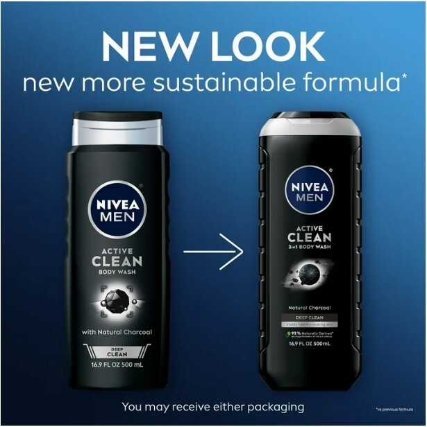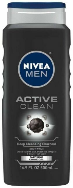3 Pack Nivea Men Active Deep Clean Natural Charcoal 16.9 oz Masculine Body Wash.