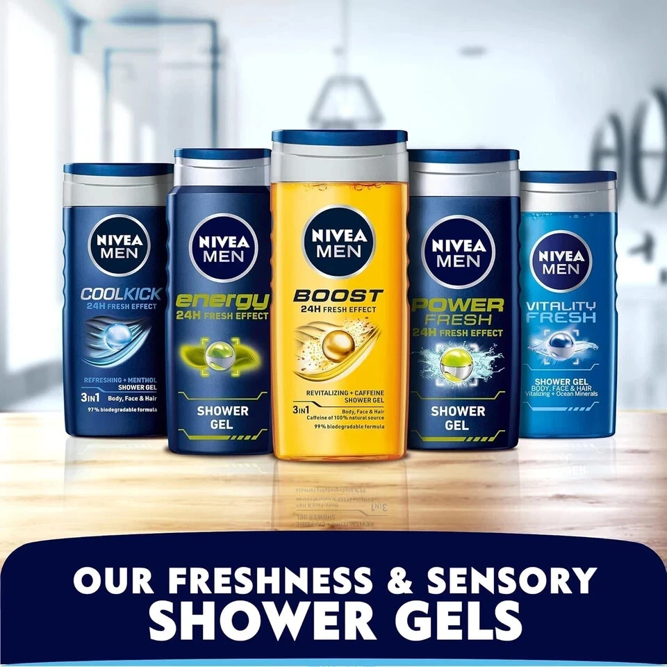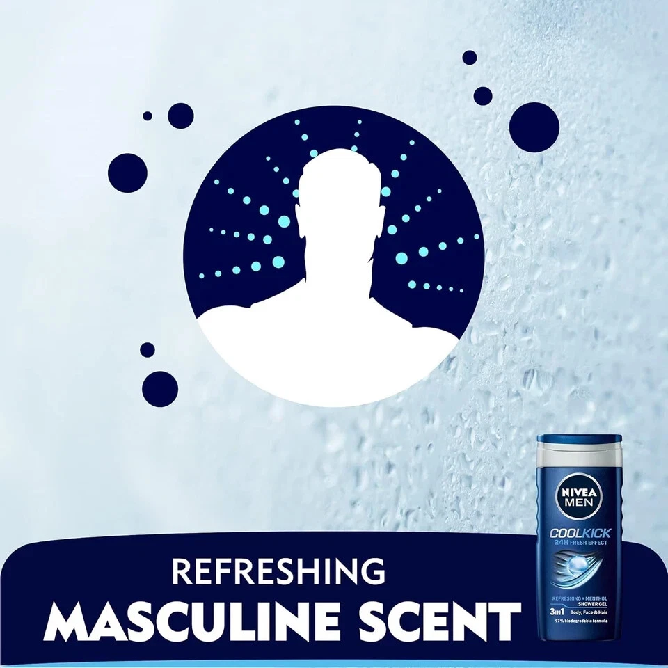 NIVEA Men Body Wash, Cool Kick 250ml free shipping world wide Product description NIVEA MEN Cool Kick Shower Gel is a unique, caring formula made specially for men who want a long-lasting, cool and fresh feeling. Infused with a cool stimulating scent of icy menthol, NIVEA MEN Cool Kick Shower Gel provides 24hours fresh effect, activates and leaves your skin and hair feeling revitalised and cared for. NIVEA MEN Cool Kick Shower Gel is pH skin balanced, dermatologically approved and suitable for use on the face, body and hair. It’s no secret that fragrances can strongly affect our mood. That’s why at NIVEA, we carefully select fragrances that complement our body cleansing products, and why there is such a large variety of fragrances you can choose from – from fruity and floral, to citrusy and marine. If you’re looking to be wakened up during your morning shower, we offer exhilarating scents like lemongrass and moringa to give you a burst of freshness. Want something to calm you down in the evening before bed? Aromas like cocoa and honey will soothe your senses for the ultimate relaxation. If a mild, fresh scent is what you’re after, we also have cotton and aquatic scents. Basically, if you’re looking for a fragrance to put you in a certain mood during your shower, we’ll have it in our vast lineup of body cleansing products. NIVEA MEN, it starts with you! About this item Provides cool kick of freshness everyday Contains icy cooling menthol Provides long lasting freshness Gentle and effective cleansing Skin compatibility dermatologically approved Shipping All item will be shipped directly from MALAYSIA . ü Registered Post Item delivered will required signatures at the time of receiving. ü Dispatched items tracking number will be updated within 24 hrs. Of the dispatch. ü All items ordered will be dispatched within 48 hour after receiving the clear payment. ü All items require 15 to 30 business days to arrive at the given address. ü Please do not order if you are not willing to wait for above given time. ü All our items will be shipped worldwide, In any case the item is been stuck to the buyers custom department the buyer has to pay the custom charges for the receiving of the item. ü If you need express delivery we can arrange by DHL, Aramex, Fedex & UPS delivery time period 3-5 working days for more details please contact us through eBay message. . *condition apply* AZ IN - 00126SAC