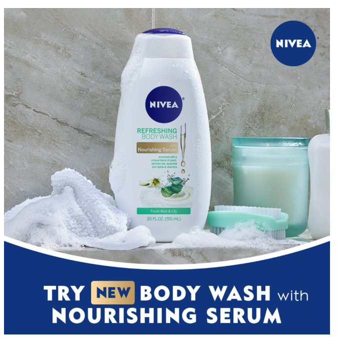 Indulge in a refreshing shower experience with NIVEA Refreshing Fresh Aloe and Lilly Body Wash . This set of three 20 fl. oz. bottles is infused with NIVEA’s signature Nourishing Serum to leave your skin feeling soft, hydrated, and beautifully scented. Features: 🌿 Fresh Aloe & Lilly Scent : Light, floral fragrance for a clean and invigorating feel 💧 Nourishing Serum : Enriched with essential oils and lipids to moisturize and care for skin 🧴 Generous Size : Each bottle contains 20 fl. oz. – great value for everyday use 🛁 Gentle Formula : Dermatologist-tested and suitable for all skin types 🎁 Set of 3 : Stock up or share with loved ones Perfect for daily use, this body wash set brings spa-like freshness to your shower routine.