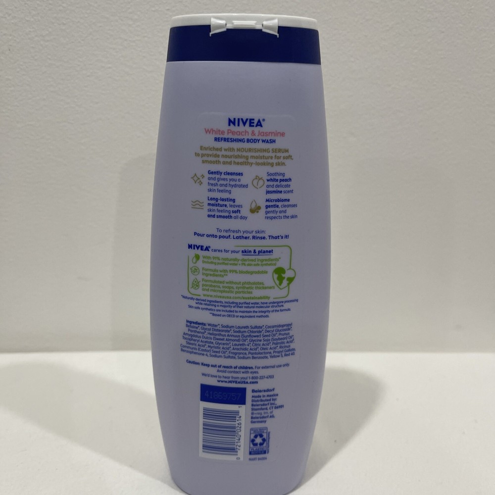 Indulge in the luxurious lather of NIVEA's Refreshing White Peach Body Wash, a blend of nourishing serum and gentle cleansing agents designed for unisex use. Perfect for those with dry skin, this 20 fl oz bottle promises a hydrating experience, infusing your skin with the essence of jasmine and the vitality of vitamins. Crafted in the United States, this all-natural formula offers a delicate balance of comfort and efficacy. The product's design, featuring a pack of one regular-sized bottle, ensures easy storage and usage, fitting seamlessly into your daily bath and body routine. Embrace the promise of a revitalized tomorrow with every use.