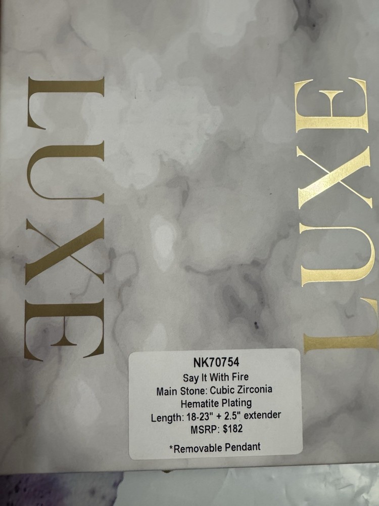 The NK70754 Say It With Fire, Luxe Layers Necklace by BP is a stunning piece that features hematite plating and cubic zirconia stones. The layered design adds a touch of elegance. Made with high-quality materials, this necklace is sure to make a statement and elevate any look with its sophisticated charm.