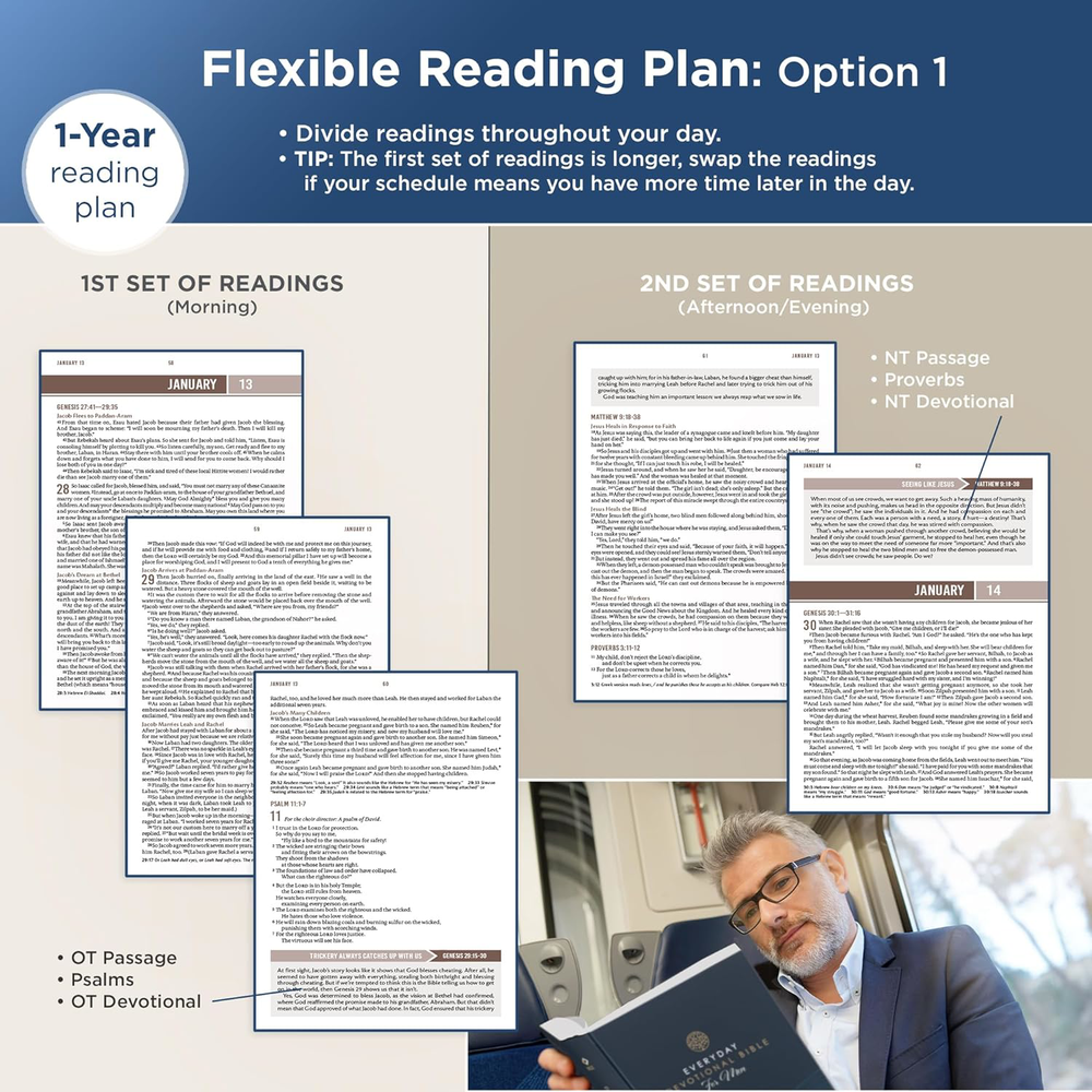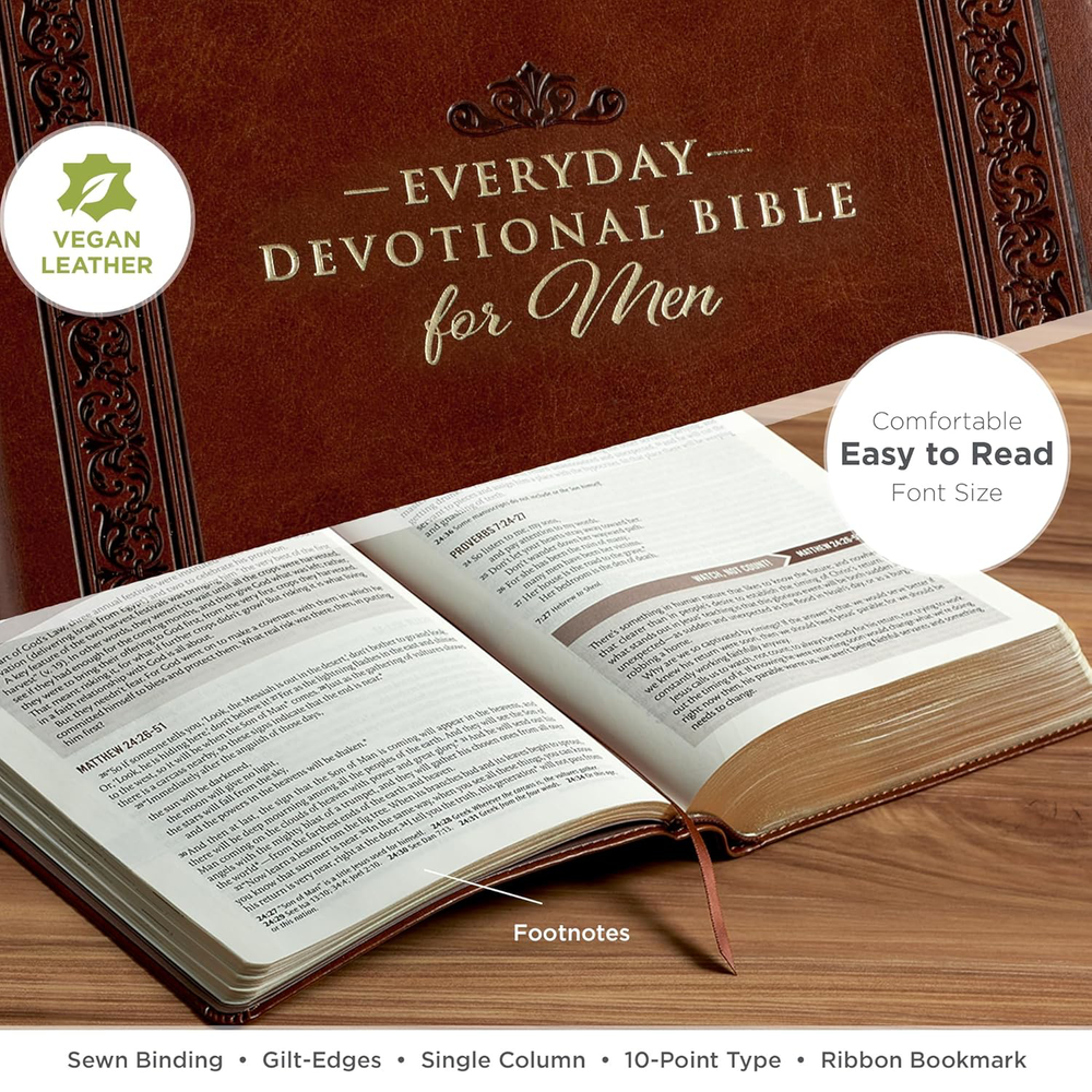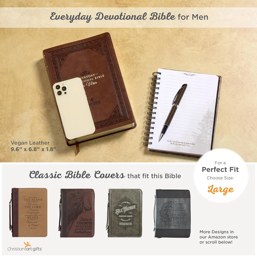 Fast Shipping Great Customer Support Satisfaction Guaranteed DESCRIPTION Shipping Shipping Shipping All domestic packages are shipped for Free (Unless other shipping method was selected during the checkout) Most items ship and arrive much sooner than the estimate delivery date. Usually within 2-3 days from payment. However, we have longer estimates to compensate for the occasional delay or supply chain breakdown. We do not accept P.O. BOXES - PLEASE PROVIDE A PHYSICAL ADDRESS Return Return Return In the event that you would like to return your purchase, we allow returns that are processed within the defined return date (the return date is to be found in the return policy/shipping and handling section) Please contact us for a return authorization and the return shipping address. Payment Payment Payment PayPal is our preferred method of payments it's the quickest, easiest and most secure way to pay for your goods or services online. PayPal offers buyer and seller protection should there be a problem. If you do not have a PayPal account, to get started and buy your first item with us is very easy. Simply click on the 'Buy It Now' button and follow the eBay checkout steps. Select PayPal as the payment method you then will be given the chance to enter your card details in to PayPal's secure checkout in order to pay for your order. Once the payment has been made, you will then be given the opportunity to make your own PayPal account to make paying for your items in the future very easy. Should there be a problem with payment please do let us know. Feedback Feedback Feedback Customer satisfaction is very important to us. If you have any problem with your order,please contact us and we will do our best to make you satisfied, please do not leave a negative feedback before we resolve your problem. We guarantee that your issue will be solved quickly. As long as you are happy with your purchase of , please leave us a positive feedback. Your feedback is very important to us it affects our search placement on eBay. We will leave a positive feedback for you in return automatically once we receive your feedback. Contact Us Contact Us Contact Us If you have any queries, please contact us via ebay. We usually respond within 24 hours on weekdays. Thank you for visiting our ebay store! Encourage the spiritual discipline of daily Bible reading when you give the Chestnut Brown Faux Leather NLT Everyday Devotional Bible for Men as a birthday gift to a son or grandson. The devotional insights in this Bible will encourage him to apply Scriptural wisdom to his daily life and flourish in his faith.The devotional Bible is covered in rich chestnut brown faux leather, and gold gilt-edging is applied to the page edges. On the front cover, you'll find a double heat-debossed frame with an intricate floral fill, complemented by additional heat-debossed corner scroll designs within the inner frame. The title, presented in gold-foiled letters and topped by a heat-debossed flourish, sits prominently in the middle of the frame, with the version name heat-debossed below it.Everyday Devotional Bible for MenNew Living TranslationThe heat-debossed frame is repeated on the back cover where the title is replaced by a heat-debossed floral design shaped like a diamond. The spine features the title and version reference accented by gold-foiled faux spine ribs.As you explore the devotional Bible, you'll notice its single-column format, which provides a comfortable reading experience. The 10-point text is stylishly printed in two colors: black and brown. To ensure quality, the convenient lay-flat binding is Smyth-sewn. Don't miss the ribbon marker that is attached to the spine to help you track your progress while reading. For your convenience, a presentation page is included in the front of the Bible. This page can be personalized when you give the Bible as a gift.With 730 unique devotions, each paired with select Bible passages from the Old and New Testaments, Psalms, and Proverbs, this Bible is designed for long-term use. You can return to it year after year, gaining fresh insights and applying Scriptural truths to your daily life . The Bible uses the inspirational text of the NLT, known for its ease of understanding and ability to facilitate deep meditation. This translation complements the insightful devotions written by Mike Beaumont.The Chestnut Brown Faux Leather NLT Everyday Devotional Bible for Men is a gift that your son, husband, or father will return to year after year. Its 730 unique devotions will guide him through the Scriptures, providing wisdom and guidance on all aspects of life. Help the men you care about grow spiritually and navigate life's challenges when you give the Chestnut Brown Faux Leather NLT Everyday Devotional Bible for Men as a Christmas or Easter gift.Heat-debossed frame with intricate floral fill and corner scroll cover designChestnut brown faux leatherGold-foiled titleHeat-debossed translation referenceFlexcoverNew Living TranslationSatin ribbon marker1824 gilt-edged pagesTwo-color interiorSingle column formatPresentation pageDaily portions from Psalms, Proverbs, Old and New Testament730 inspiring devotional insights by Mike Beaumont10-point textPackaged in a full-color printed cardstock sleeveSize: 9.6" x 6.8" x 1.8" (244 x 173 x 46mm) NLT Holy Bible for Men Devotional, Vegan Leather, Daily Reading Plan Click here to see description Fast Shipping Great Customer Support Satisfaction Guaranteed DESCRIPTION Shipping All domestic packages are shipped for Free (Unless other shipping method was selected during the checkout) We ship within two business days of payment, usually sooner Standard FREE shipping takes between 3-5 business days Expedited shipping takes between 2-3 business days Overnight shipping takes between 1-2 business days We do not accept P.O. BOXES - PLEASE PROVIDE A PHYSICAL ADDRESS We Ship Globally using ebay's GSP, the item is sent to a logistic center in KY and shipped from there to th