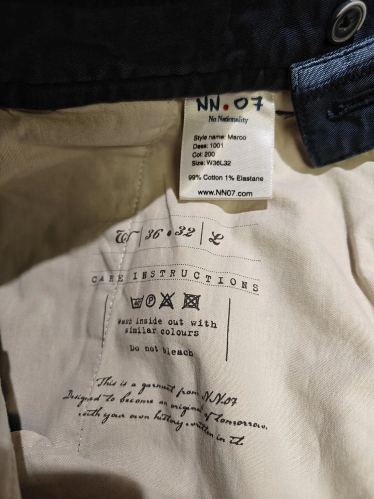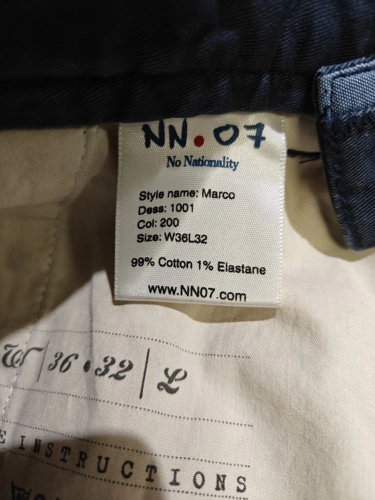 NN07 Marco 1001 Mens Chino Pants W36 L32 Blue Trousers Slim Fit Tapered Stretch