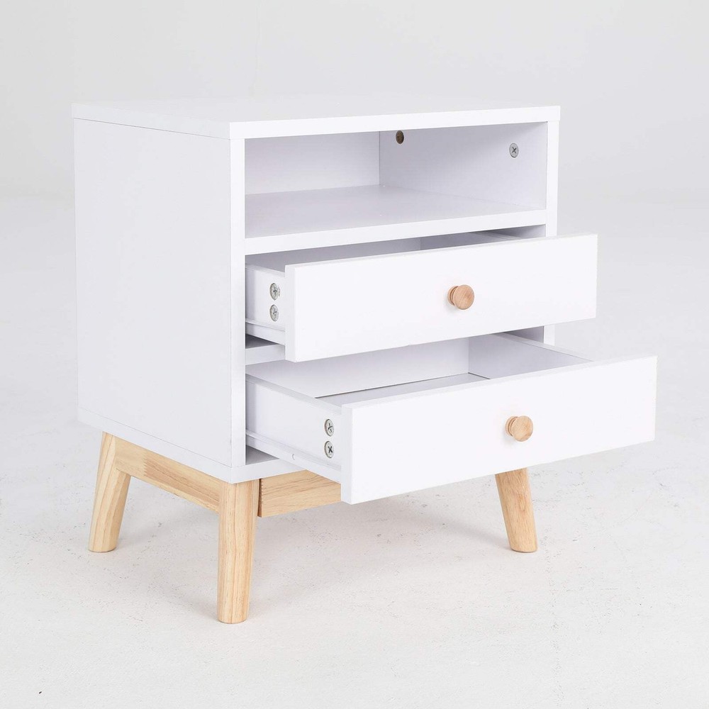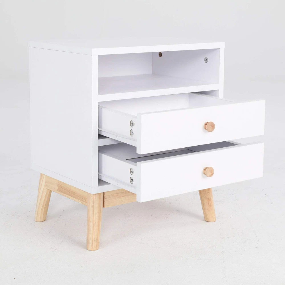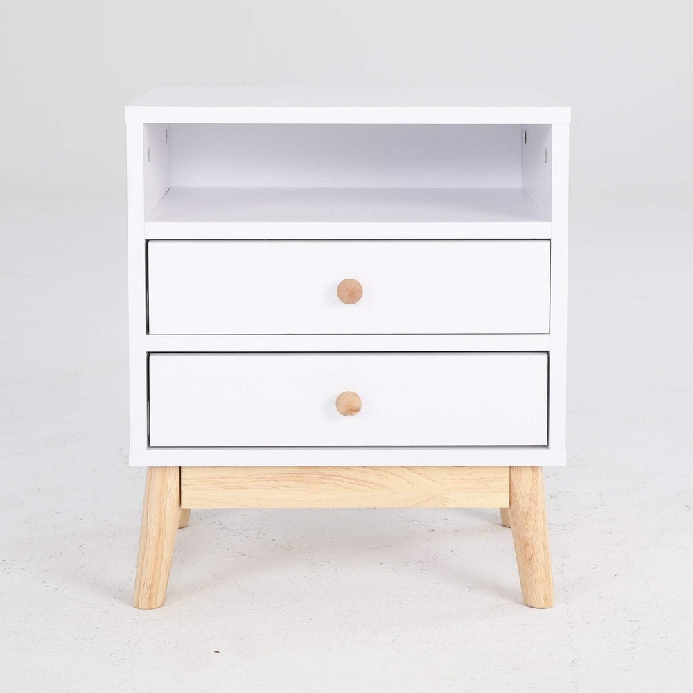 $ 57.38NNEDSZ 2-Drawer Wood Leg Nightstand in Suzy White - Compact Bedside Storage Cabinet
