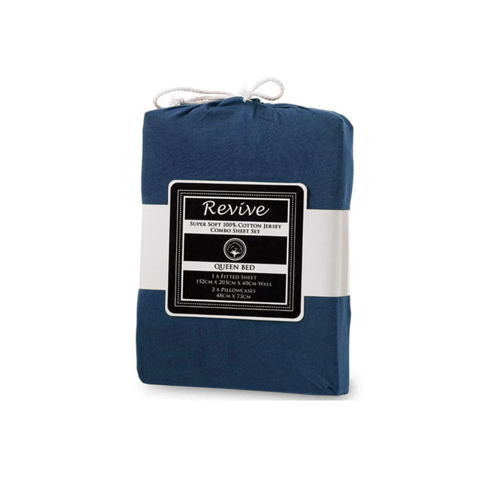 NNEDSZ Revive Blue 100% Cotton Jersey Super Soft Fitted Sheet Combo Set Double 3