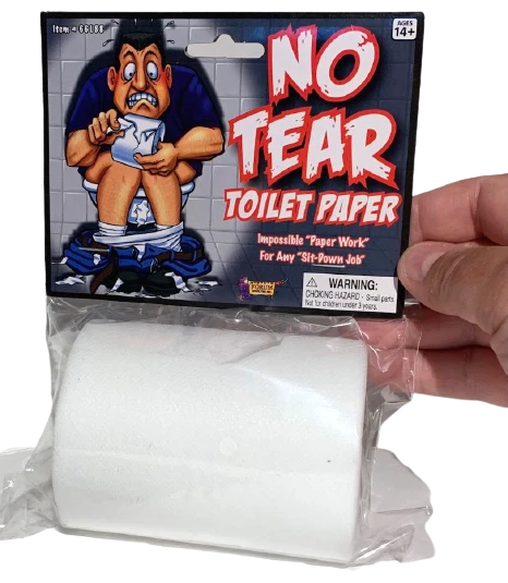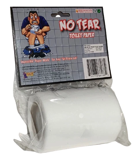NO TEAR TOILET PAPER ROLL Non Rip Joke Prank Gag Gift Funny Fake Bathroom Humor