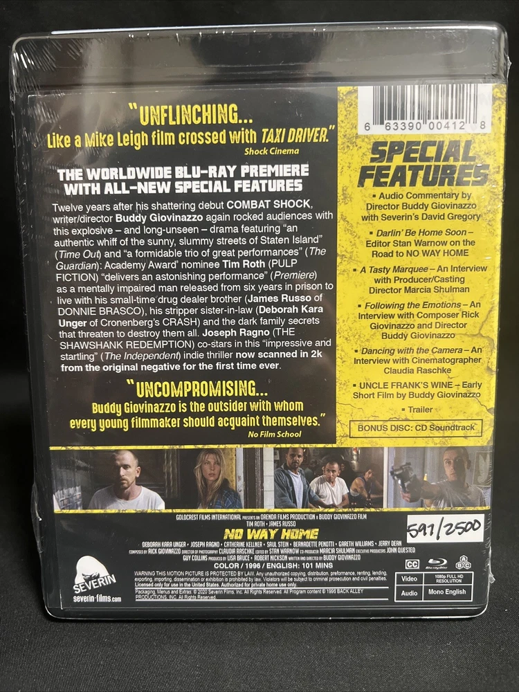 Region Code:Blu-ray: Region FreeType:MovieActor:Tim Roth, Deborah Unger, James Russo, Joseph RagnoMovie/TV Title:No Way HomeCinematic Movement:Art/Indie FilmSub-Genre:ThrillerEdition:Limited EditionDirector:Buddy GiovinazzoCountry/Region of Manufacture:United StatesGenre:DramaRelease Year:1996Format:Blu-rayLanguage:Englishgtin13:0663390004128UPC:0663390004128