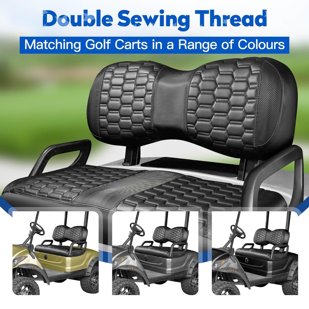 Golf Cart Seat Covers, Fit for YAMAHA/G29/Drive2 Ordinary Front Seat Cushion, Yamaha Accessories Vinyl Seat Covers, No Nails Required(Carbon Fibre Black and Black) Applicable Models: YD type diamond seat covers kit (Hexagon Carbon Fiber Black) is only suitable for Yamaha drive G29 2007-2016 and 2017+ drive 2 natural gas and electric original ordinary golf carts, not for luxurious thick cushions, please measure your seat size before buying. Seat cushion size: L40.9 x W19.6 x H5.5 in, Backrest size: L36 x W14.1 x H6.2 in. This front seat cover can perfectly match the OEM front seat. High Quality Material: Golf Cart Front Seat Covers is made of high quality durable vinyl material and breathable foam padding, which is wear-resistant, fade-resistant, crack-resistant, soft, and not easy to fatigue when sitting for a long time, which can effectively prolong the service life of the golf cart seat cover. Breathable foam filler can provide a more comfortable sitting position and good breathability, so you can take a long time to ride the golf cart more experience Easy Installation: Easy to install with straps. No need gun nails and without removing the old vinyl seat cover. Just cover the old seat with this Hexagon Carbon Fiber seat covers. In addition, the adjustable shoulder straps and retractable buckles design help you to install and remove seat covers in minutes.Very stable, not easy shift Hexagonal carbon fiber seat cover design: The front seat cover of the golf cart uses hexagonal carbon fiber design (Black), which adds a touch of luxury and elegance to your golf cart, and will make people shine on the course. Upgrade your golf cart's old seat New Look: This Golf Cart Seat Cover gives your golf cart a new look, covering your old seat cover and providing full protection for your seats. It gives you a new and luxurious look and feel. All of these golf cart seat covers provide excellent comfort and style Shipping We offer FREE shipping on all orders! We ship within Three business days of payment, usually sooner. We use a selection of shipping services such as UPS, FedEx, USPS etc. We only ship to the lower 48 states, no APO/FPO addresses or PO Boxes allowed. Local pickups and combined shipping options are not provided at this time. Return You can return a product for up to 30 days from the date you purchased it. Any product you return must be in the same condition you received it and in the original packaging. Please keep the receipt. Payment We accept payment by any of the following methods: PayPal Please pay as soon as possible after winning an auction, as that will allow us to post your item to you sooner! Feedback Customer satisfaction is very important to us. If you have any problem with your order, please contact us and we will do our best to make you satisfied. Contact Us If you have any queries, please contact us via ebay. We usually respond within 24 hours on weekdays. Please visit our eBay store to check out other items for sale! Thank you for shopping at our store.