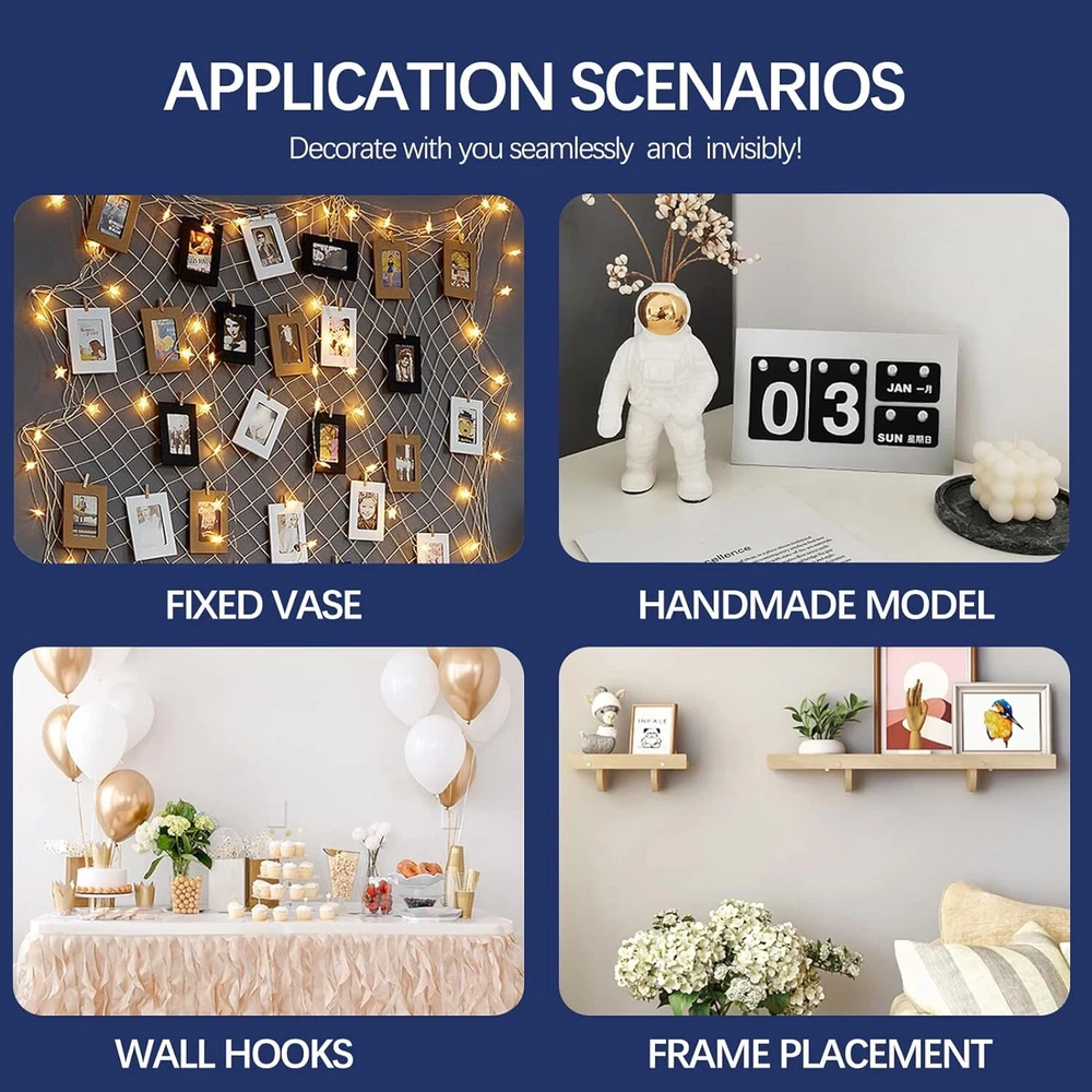 NOMMO Sticky Tack for Wall Hanging, Poster Putty 20mm, Clear Product Details Brand: NOMMO Specific Uses For Product: Wall Art, Craft, Poster Material: Adhesive Putty Compatible Material: Wood, Glass, Paper, Ceramic, Plastic, Metal Item Form: Gel Special Feature: Lightweight Color: Clear Item Package Quantity: 500 Unit Count: 500.0 Count Manufacturer: NOMMO Item Weight: 4.9 ounces Package Dimensions: 9.21 x 4.33 x 0.28 inches Item model number: NOMMO Shape: Round Material Type: Adhesive Putty Size: 20mm Manufacturer Part Number: nichoushadianzishangwuyouxiangongsi Brand: NOMMO Specific Uses For Product: Wall Art, Craft, Poster Material: Adhesive Putty Compatible Material: Wood, Glass, Paper, Ceramic, Plastic, Metal Item Form: Gel Strong Viscosity: The clear sticky dots possess high adhesion and durability, swiftly bonding firmly without the risk of detachment. They leave no residue upon cleaning the surface, preserving the integrity of the object being adhered to without causing damage. High Transparency: Double Sided Adhesive Putty is made of a clear acrylic material that is flexible, durable and maintains a clean, fresh look. Make sure the surface is clean and dry before use. Leave No Trace:Adhesive Putty is transparent and removable and will not leave any marks or damage the adhesive surface. Due to the strong adhesion, please hold it gently when tearing it off and avoid tearing it hard to avoid damaging the item. Ease of Use: These adhesive dots are user-friendly, requiring no tools and minimal waiting time for the glue to dry. Simply peel off the protective film and stick them onto the desired location. Avoid forcefully tearing them off when moving or replacing, preventing damage to your belongings due to their strong adhesion. Wide Applicability: Suitable for various materials such as plastic, wood, glass, ceramic, metal, and paper, these sticky putty dots have versatile uses. They can be used for fixing balloons and posters, decorating envelopes, photos, ornaments, creating albums, DIY crafts, or packaging holiday gifts. They are an ideal choice for household, office, and school projects.