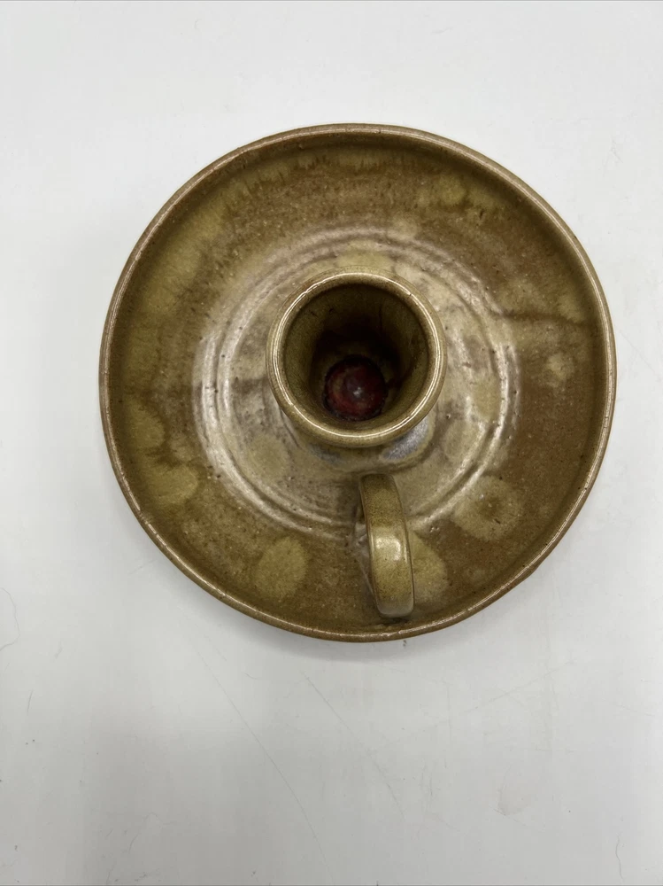 NORTH CAROLINA POTTERY CHAMBERSTICK CANDLE HOLDER SIGNED LEAGUES finger Loop