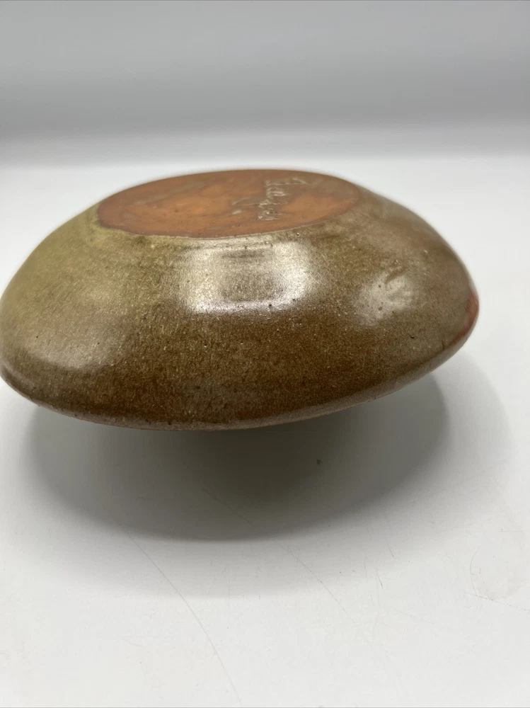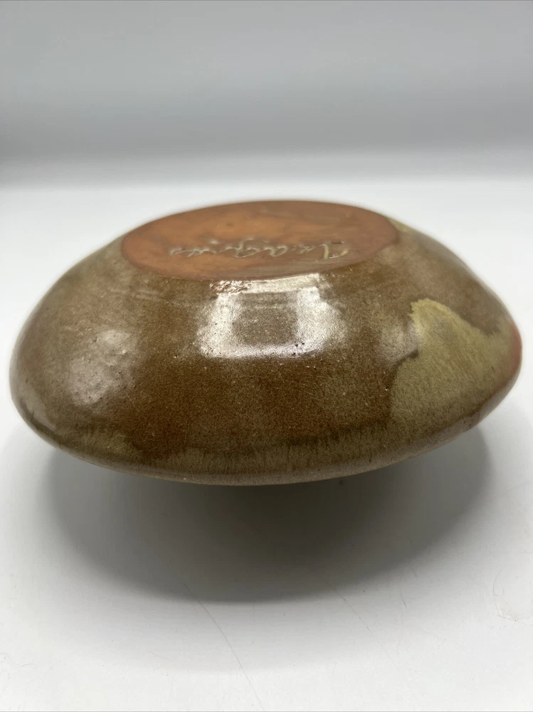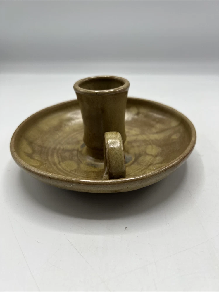 Product Line: Leagues Signed: Yes Pattern: No Pattern Item Height: 3.75” Origin: North Carolina Production Technique: Pottery Backstamp: Signed Time Period Manufactured: Unknown Country/Region of Manufacture: United States Style: Dutch Colonial Material: Clay, Stoneware Production Style: Art Pottery Suitable For: Lucite Candles, Taper/Dinner Candle Model: CHAMBERSTICK CANDLE HOLDER Type: Candle Holder Signed By: Leagues MPN: NA Theme: America, Barn, Colonial, Victorian Original/Licensed Reproduction: Original Color: Brown Features: Finger Loop, Drip Tray Room: Any Room Handmade: Yes UPC: Does not apply Item Width: 6.5” Dia Year Manufactured: Unknown Brand: Leagues Subject: Pottery Finish: Glossy gtin13: Does not apply