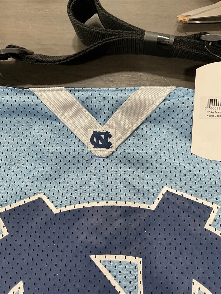 Show off your team spirit with this North Carolina Tar Heels jersey purse! Perfect for football season or just a great way to show your support for the team, this bag is made from high-quality sports jersey material and features the iconic Tar Heels logo. Measuring 12" x 12" x 4", this unisex adult bag is ideal for students, fans, and anyone who wants to show their love for the North Carolina Tar Heels. The blue color and regular season design make this bag a great addition to any collection. Plus, it's perfect for game day or just a day out with friends. Get yours today and show your support for the Tar Heels!