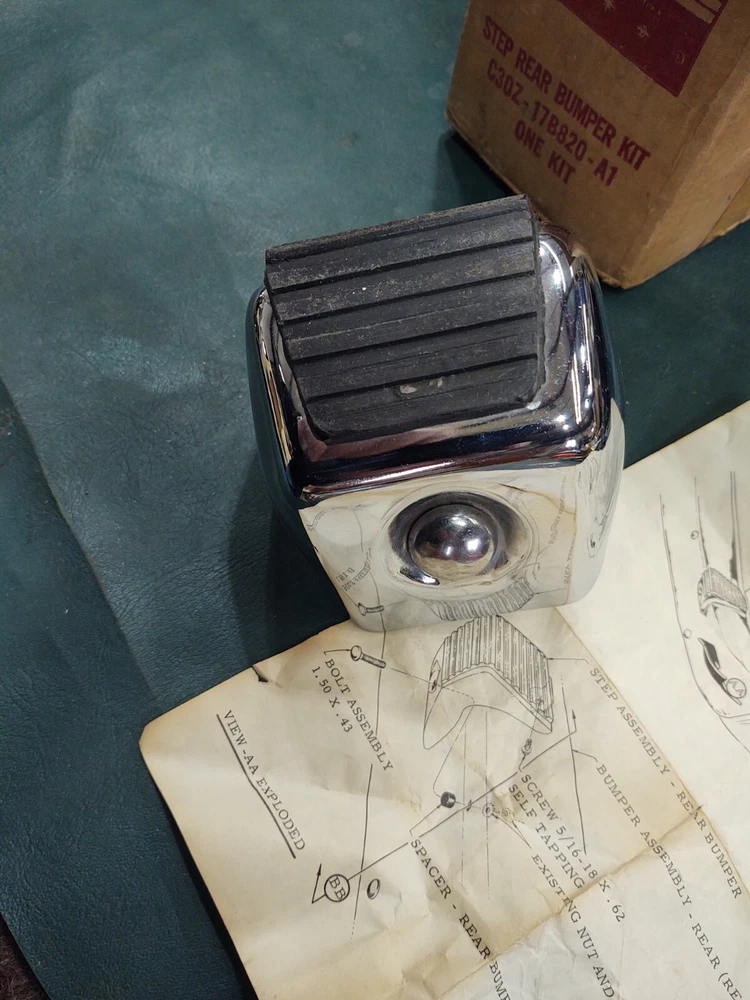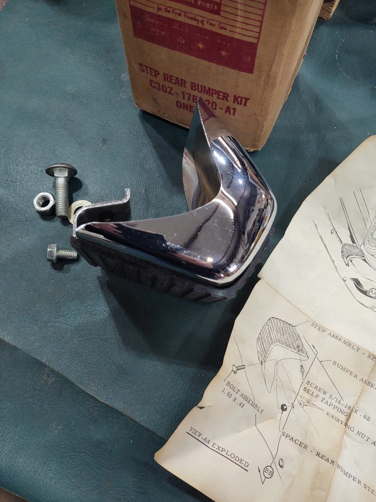 NOS OEM FOMOCO 1963 1964 Ford Fairlane & 1963 Mercury Meteor Station Wagon Accessory Rear Bumper Step Complete with attaching hardware and instructions. PART# C3OZ-17B820-A1 . MY FIT RANCHERO ? Please look at the pictures this is what you will receive. Make sure and do your research at this fits your application. Has been on the shelf of a closed Ford dealership for years very nice.