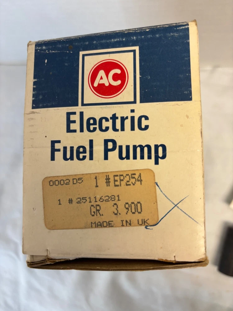 NOS Delco # EP254. GM # 25116281 Electric fuel pump . Fits various GM vehicles from 1982-1995. Make sure this is the correct part for your classic. Thanks for looking (B44)