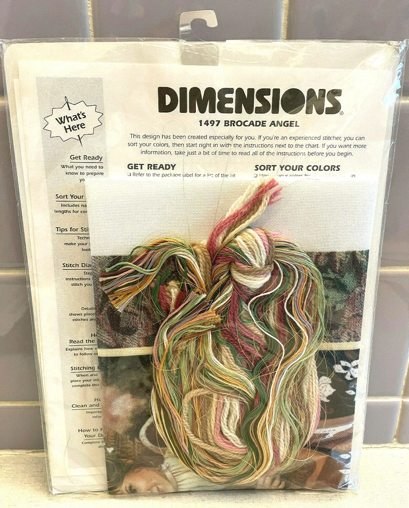 gtin13: 088677014971 Theme: Holiday/Christmas - Angels UPC: 088677014971 Bundled Items: Fabric/Cloth, Wool Yarn, Thread/Floss, Gold Metallic Thread, Needle, Instructions Brand: Dimensions MPN: 1497 Country/Region of Manufacture: United States Format: Framed Picture Model: Brocade Angel