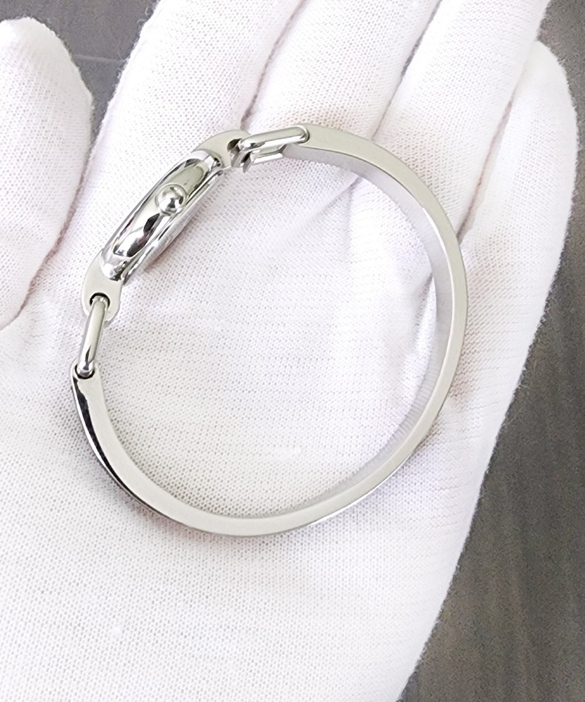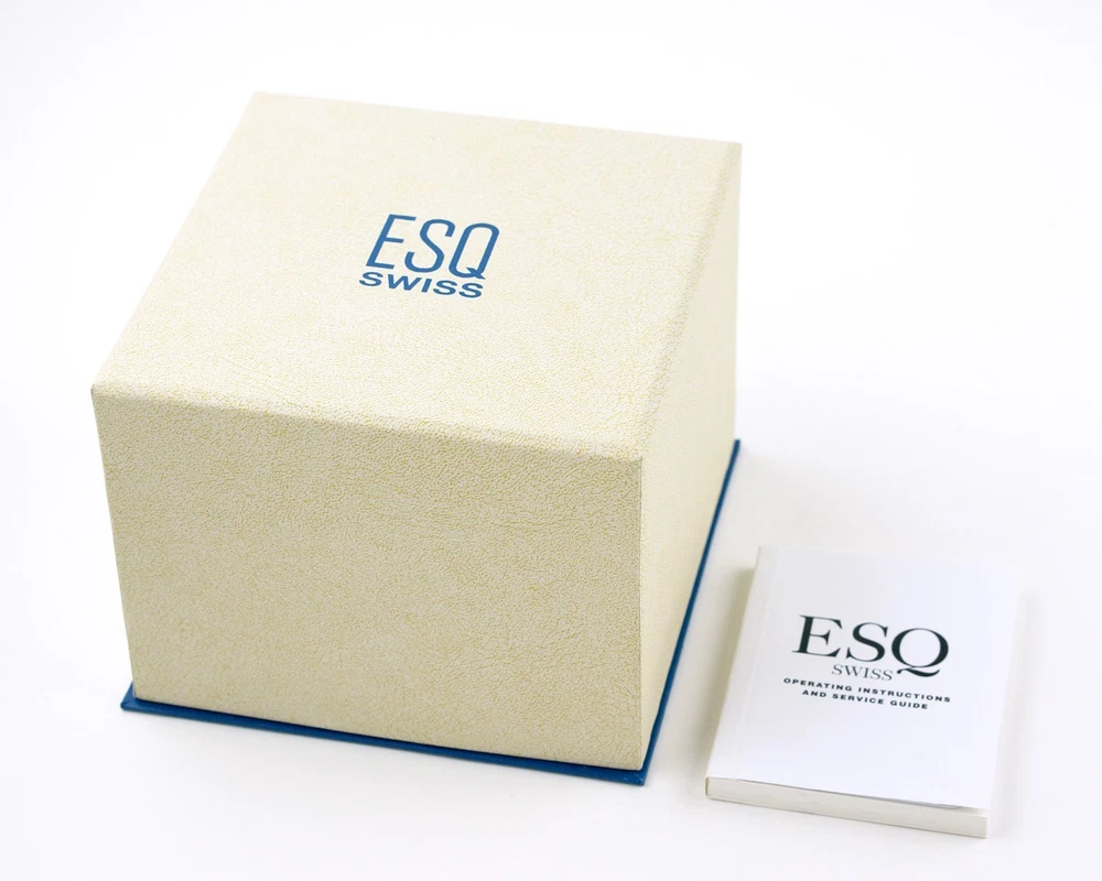 1 Details WATCH BRAND: ESQ Swiss (by Movado) COLLECTION: N/A MODEL NUMBER: 7101086 GENDER: Women MOVEMENT: Swiss Quartz RETAIL/MSRP: $225 DIAL COLOR: White Mother of Pearl SIZE: Diameter: 20 mm (0.79") HANDS/MARKERS: Silver Tone Stainless Steel, Polished Finish BRACELET BANDS: 6 mm (0.23") width; silver tone stainless steel, polish finished slim bangle adorned with black leather, features a hook closure to keep the watch secure and comfortable around the wrist. LUG WIDTH: 6 mm (0.23") CLASP: Hook closure; Adjust-O-Matic closure FITS WRIST: Up to 16 cm (6.25") CASE MATERIAL: Silver Tone Stainless Steel; Polished Finish SIZE: Diameter 25 mm (1") excluding crown THICKNESS: 6 mm (0.23") BEZEL: Silver Tone Stainless Steel, Polished Finish ADDITIONAL INFORMATION FEATURES: Sapphire Crystal FUNCTIONS: Hour, Minute WATER RESISTANCE: 30 meters/165 feet/3 ATM WARRANTY: 2 Year Factory International Warranty 100% brand new and authenticity guaranteed or your money back. Item comes with original ESQ Swiss presentation box, retail tag, instruction manual, and two year international warranty. Brand new with factory seals intact. All items are in stock ready to ship.