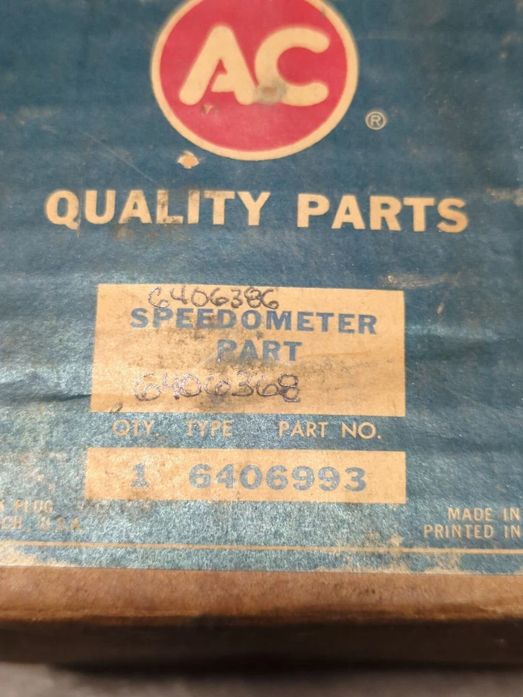 Original AC/GM speedometer frame in it's original box. The part consists of all of the internal workings -frame, gears etc. box is dated October of 62. The part number on the box is 6406993 the number on the part itself is 6406386. The complete speedometer part number would have been 6406386. My AC parts book says the type is "AF" -i'm not sure what 63 Buick models it will fit -maybe all, maybe not. Make sure to check pics or check the part number to make sure it works for your car before you buy