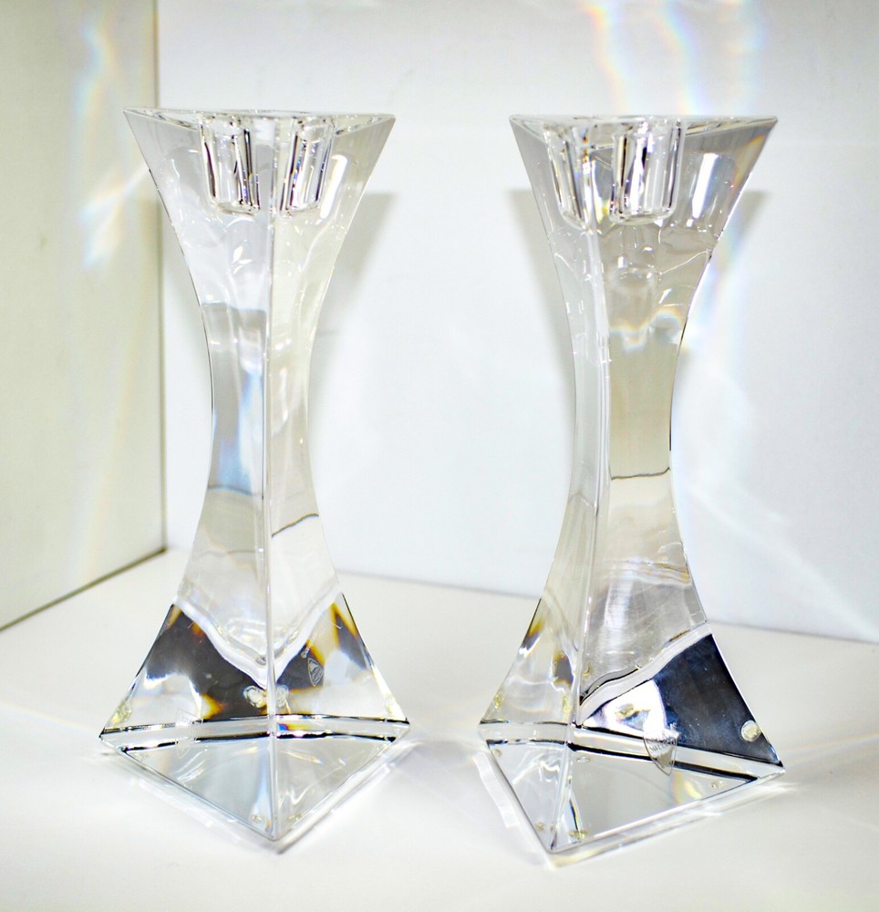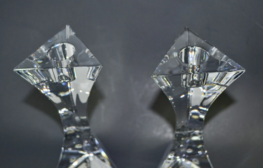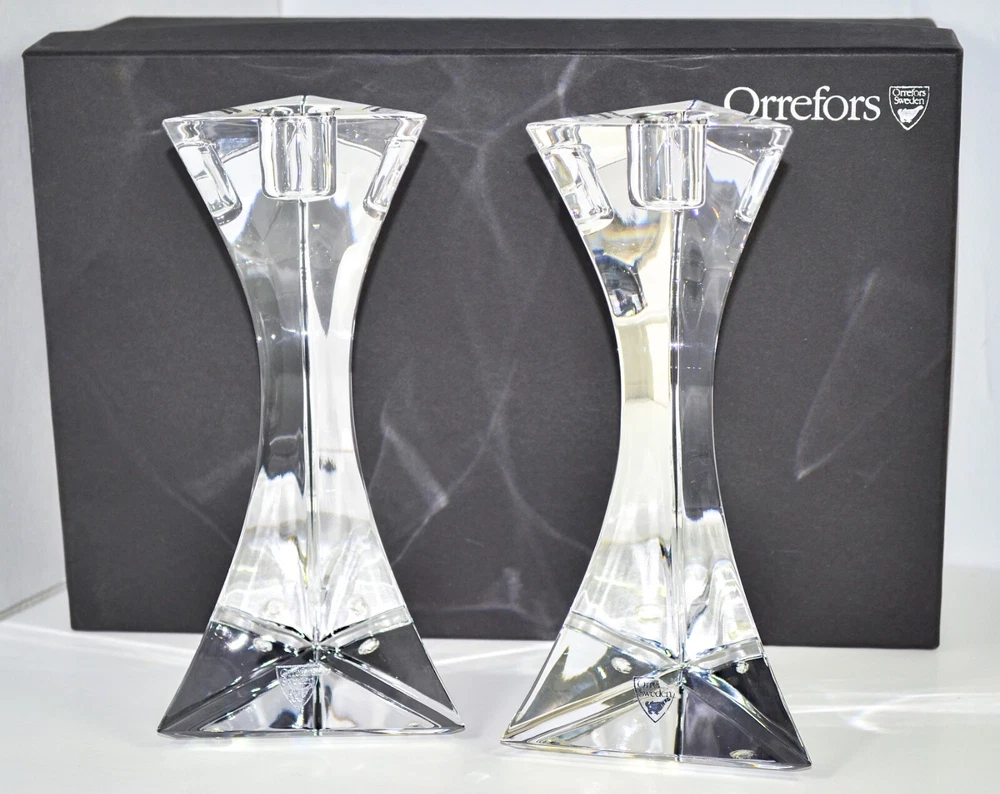 Orrefors Vintage Orrefors Triangel Full Lead Crystal Candle Holder SET With Original Box Made In Sweden Designer, Martti Rytkonen Height 182mm/ 7 1/8 ” Diameter 92mm/ 3 1/2 ” 6529101 Condition: Condition is New Old Stock in Original Box. No chips, cracks or repairs. Candle Sticks are Very Beautiful and in Excellent and Unused but Handled condition (to take photos). One of the two removable decal stickers has a slightly peeled corner (see photo). Box shows storage wear, including scratches and nicks. Please see all photos as they are part of the description. Pictures of actual item you will receive. 100% Authentic. Bright white spots are usually from lighting or camera flash. Item is from a non-smoking home here on the Monterey Bay. Please feel free to ask any related questions. Content: Only item (s) pictured, if it's not mentioned or pictured, its not included. Payment: 4 days with auction listings. Or immediate with Buy It Now. Returns: 30 days, buyer to pay return shipping cost. Shipping: USPS will be well packaged. Shipping cost reflects fully insured item. Please see shipping/payment tab for shipping cost to your location. Message for combined shipping on multiple items. Contact/Questions: Please feel free to contact us for any reason; prior to purchasing or placing bids is best. For questions relating to an auction item, please ask no later than 4-hours from auction end so we are able to address your questions in a timely manner. Thank you for checking out our additional listings! Thank you for your bidness!