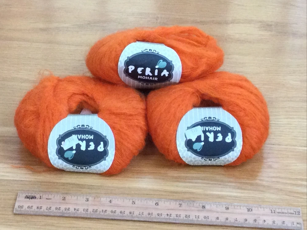 This product consists of 3 skeins/ cakes of PERIA Mohair Blend Orange Yarn. The yarn is made of mohair, acrylic and nylon. Made in Turkey. From a non-smoking and pet-free home. Condition is NEW OLD STOCK. Vintage/ retired color. Please see photos to supplement this description. Ruler indicates size. I am happy to combine shipping so please see my other listings (including lots of vintage and collectible items this week INCLUDING OTHER YARN!!). Thanks and good luck!!