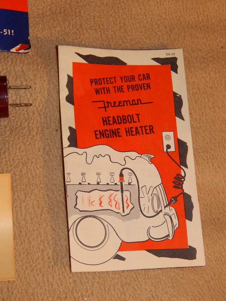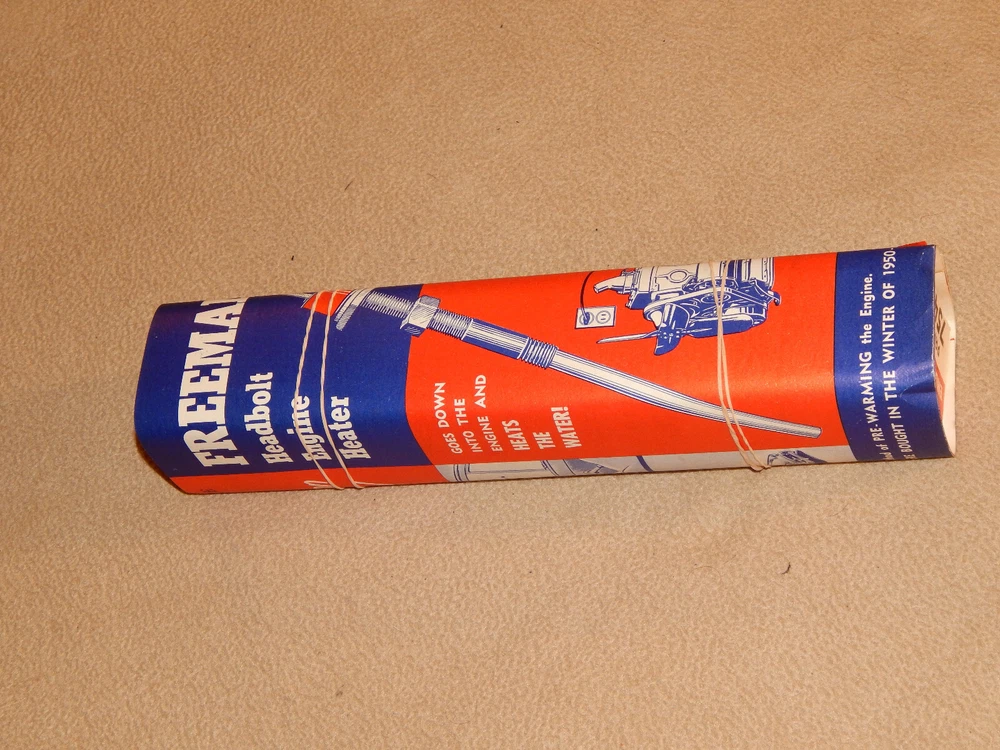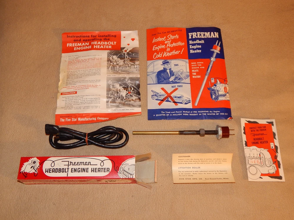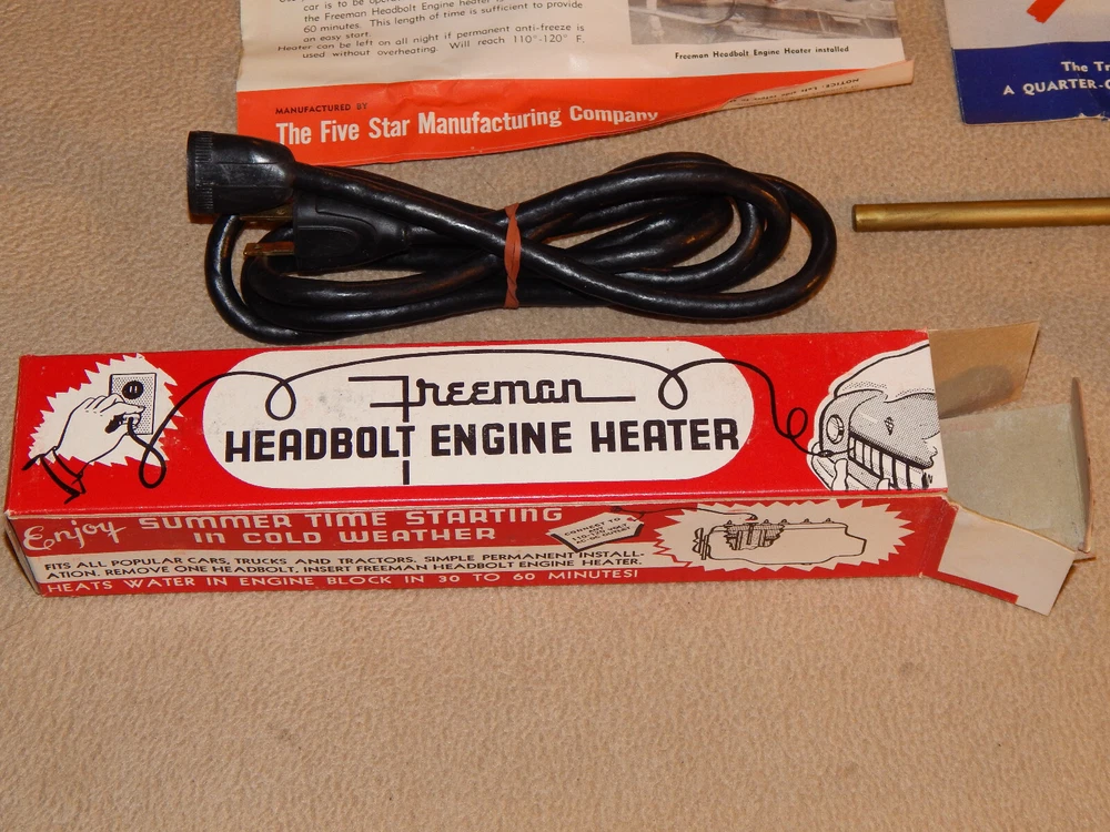 We got this Vintage Freeman Headbolt Engine Heater with original box, Instructions, and advertisements from an estate we took in. It only comes with what is shown in the pictures. Because this is a Vintage item it is being sold AS IS