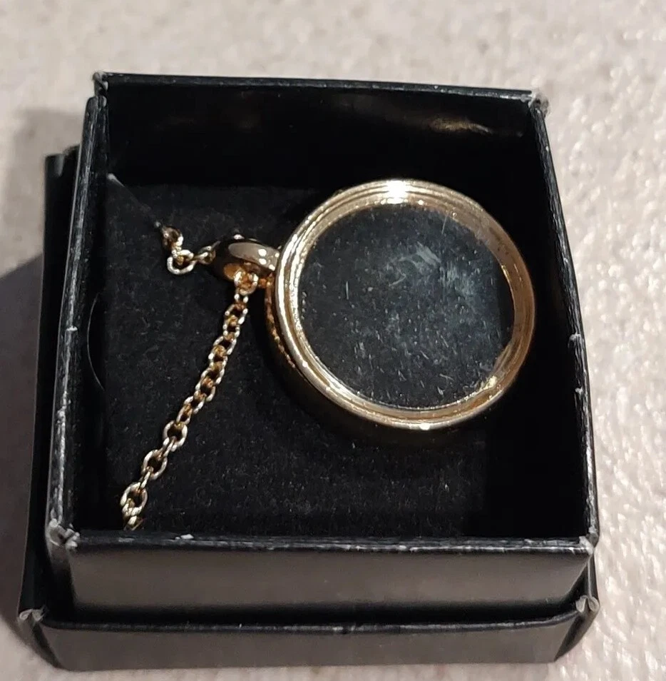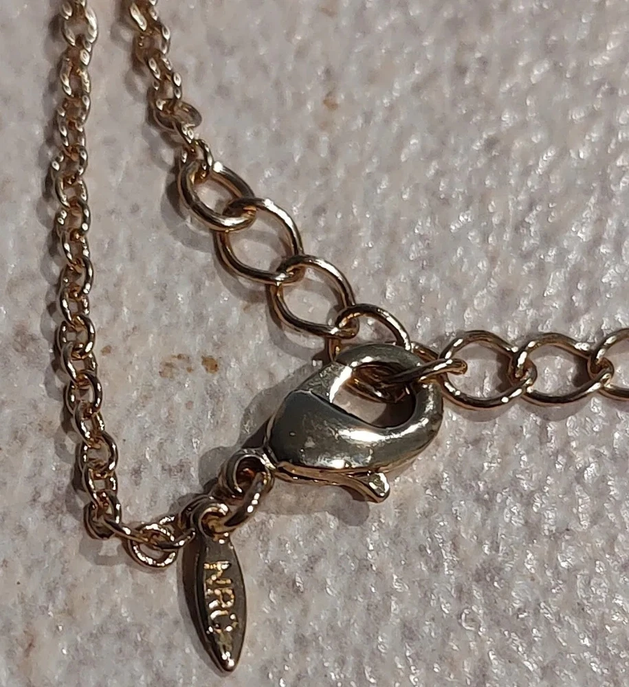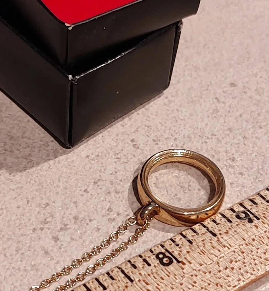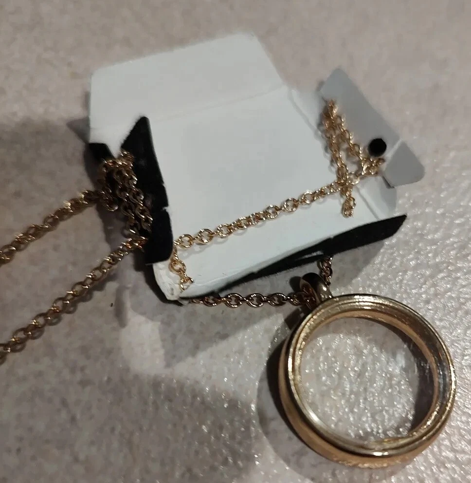 NRC Open Circle Necklace Fully Inlaid with clear glass Goldtone chain 18" new