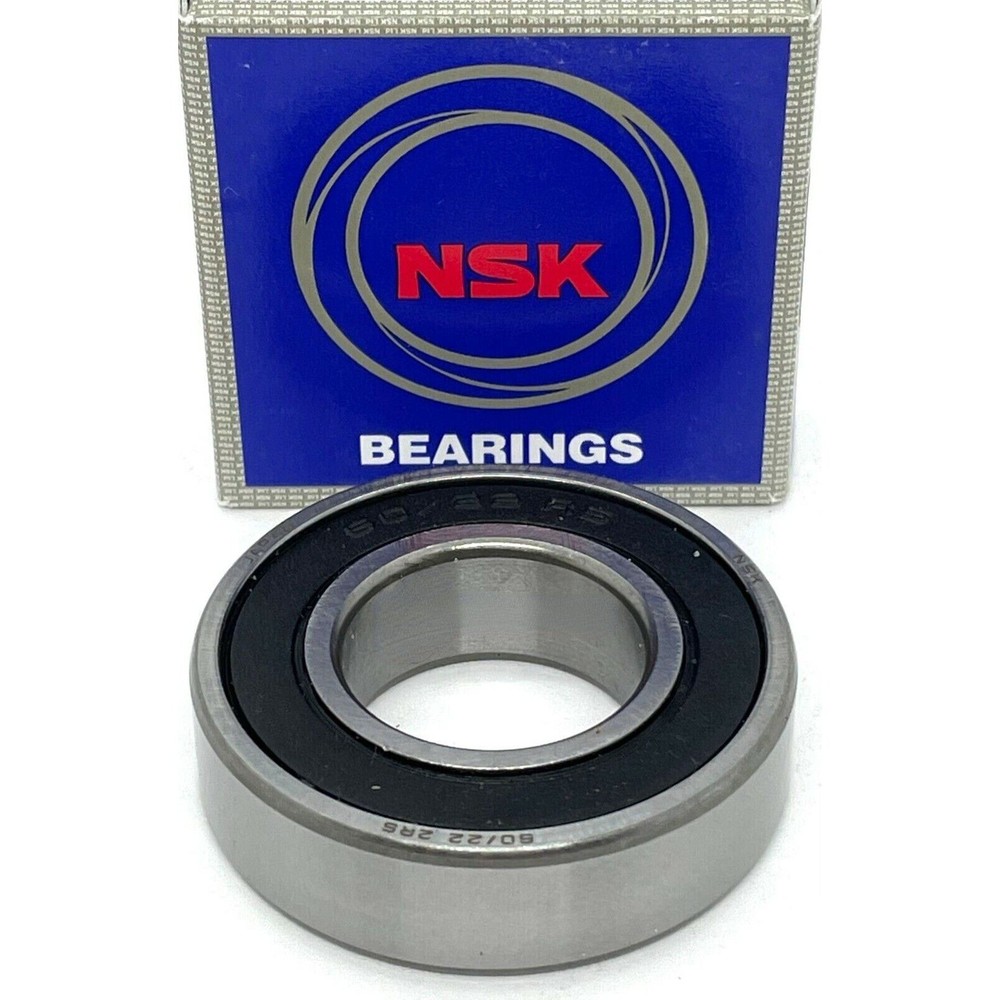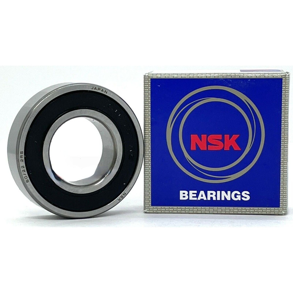 Description: 60/22-2RS, Bearings are made from Chrome Steel, each bearing has 2 Rubber Seals to protect the bearing from dust or any possible contamination, these are self lubricated bearings (bearings are already greased). Item: 60/22-2RS Ball Bearings Brand: NSK Made in Japan Type: Deep Groove Ball Bearings Size: 22mm x 44mm x 12mm Inner Diameter: 22mm Outer Diameter: 44mm Width: 12mm Closures: 2 Rubber Seals Dynamic load rating Cr: 9,400 N Static load rating Cor: 5,510 N Limiting Speed: Grease Lubrication: 17,000 RPM Package Include : ONE BEARING 60/22 2RS NSK