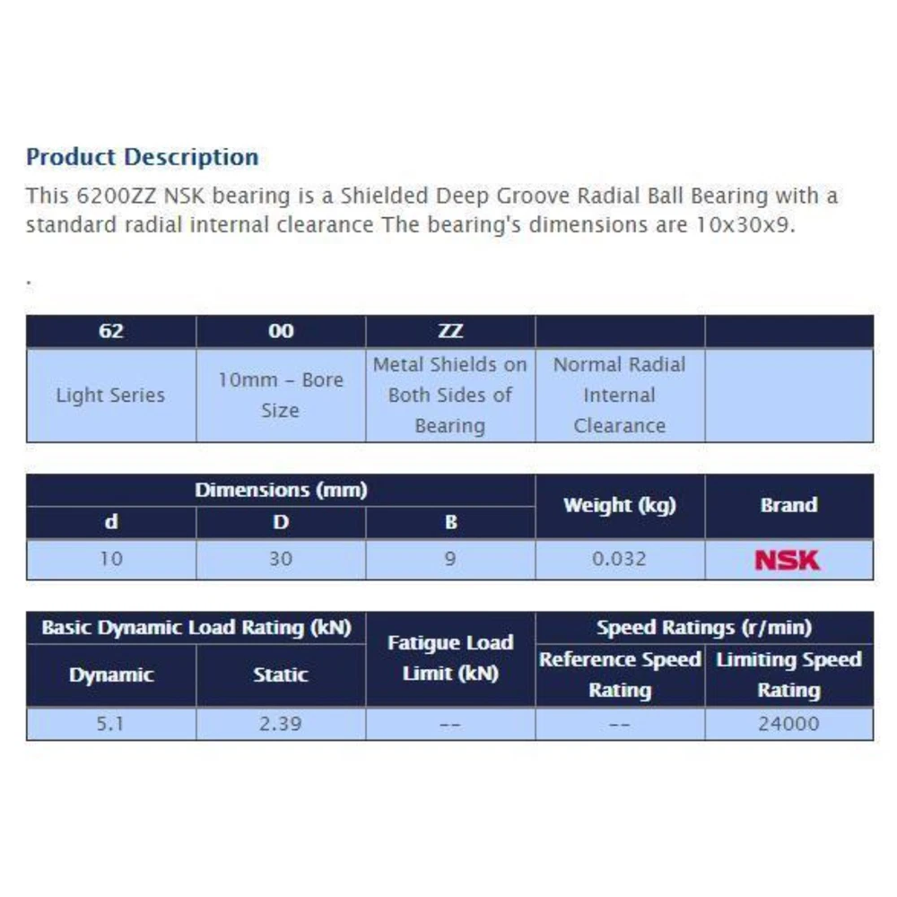 NSK 6200 ZZ Deep Groove Radial Ball Bearing 10x30x9mm On Dec 4, 2024 at 23:03:06 PST, seller added the following information: