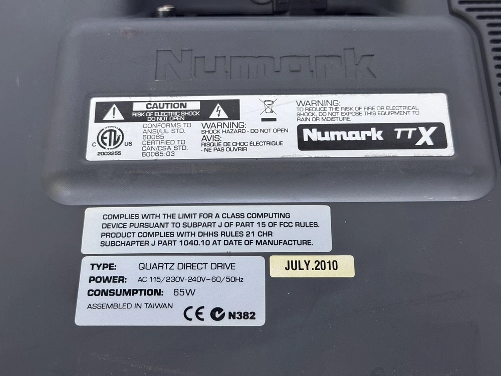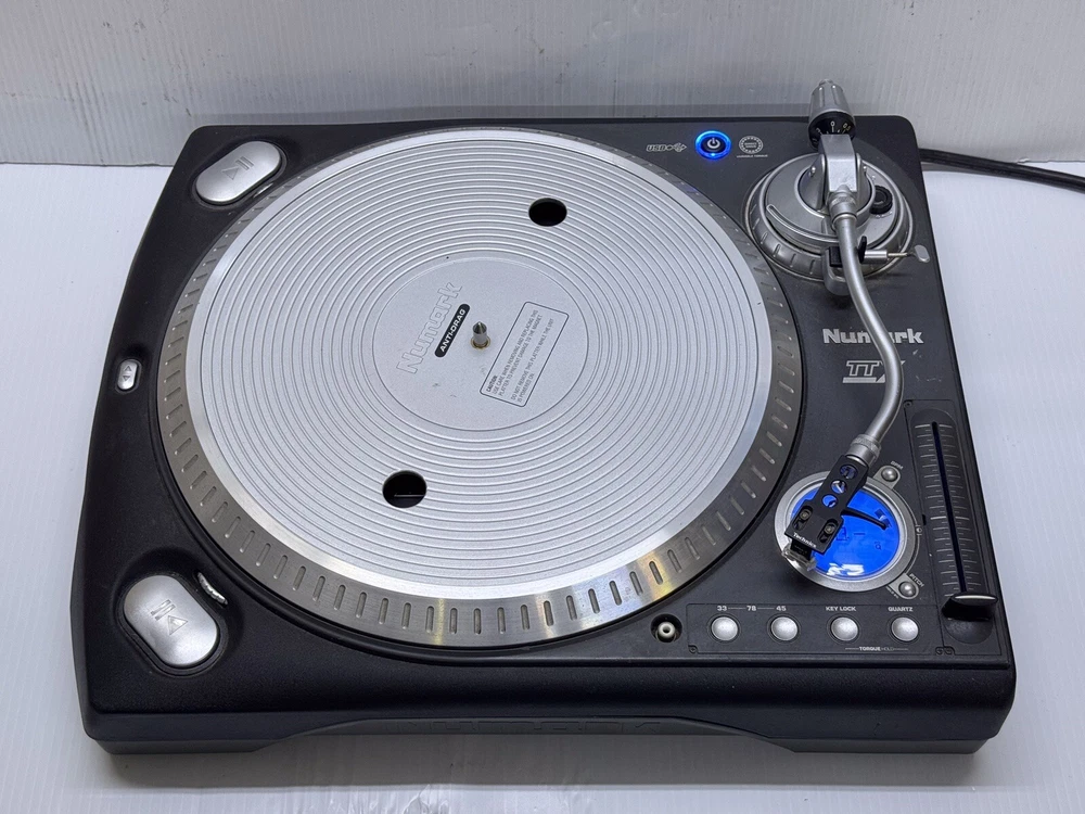 Good preowned cosmetic condition and working order, one pause/play button doesn't work, another pause/play button (at the back corner) is working. This Numark TTX Quartz DJ Turntable is a reliable and high-quality option for any DJ setup. It features a direct drive and aluminum platter material, with pitch control, reverse, brake speed control, pitch control/lock, LED light(s), detachable target light, and loop function. The turntable is designed with a black color and made in Taiwan. It comes with a DJ turntable, cable, lead & connector, and slipmat. The audio outputs are RCA/Phono Female, with speed settings of 33.3 RPM, 45 RPM, and 78 RPM. This turntable is perfect for any DJ looking for a reliable and feature-packed option.
