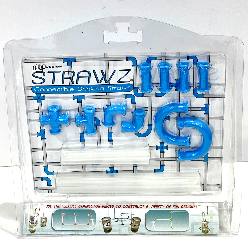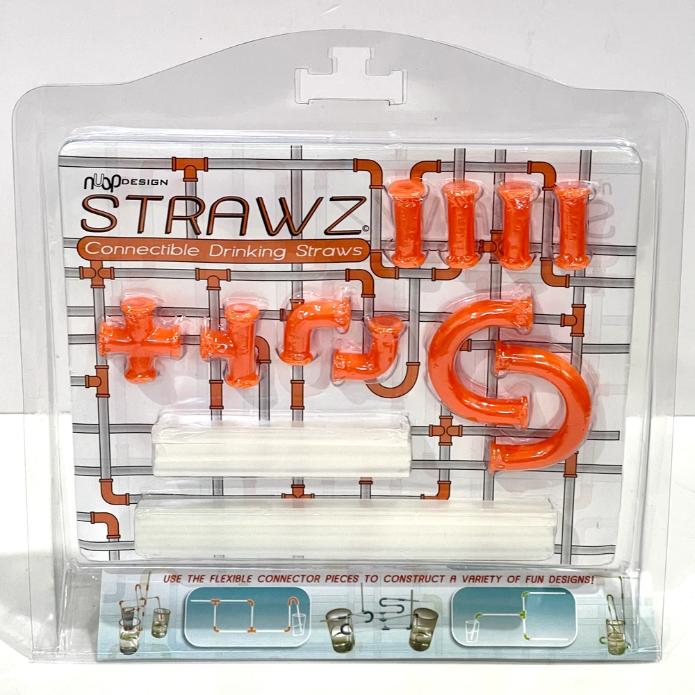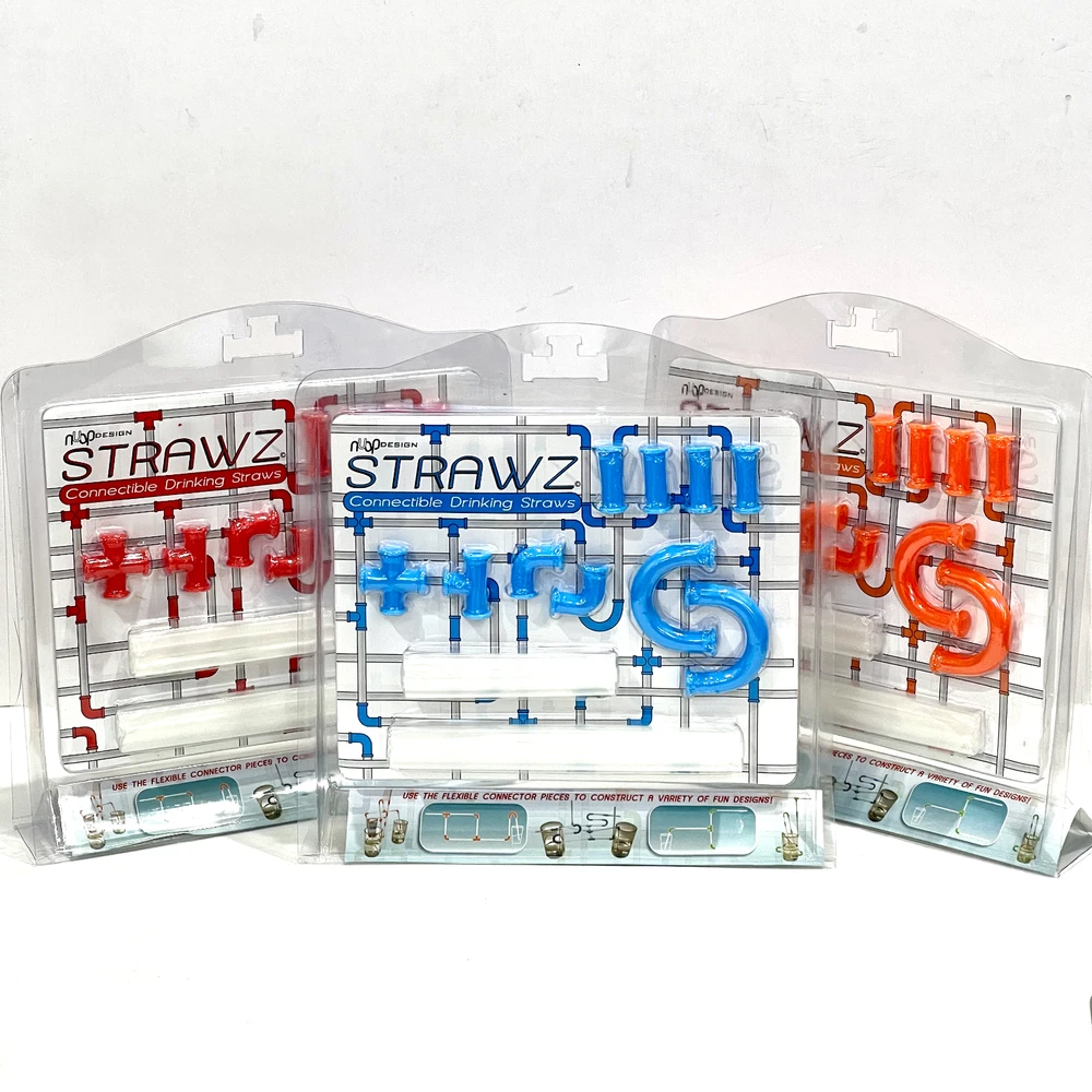 New, Sealed. Choose from Blue, Red, or Orange. Strawz Connectible Drinking Straws. Use the Flexible Connector Pieces to Construct a Variety of Fun Designs!