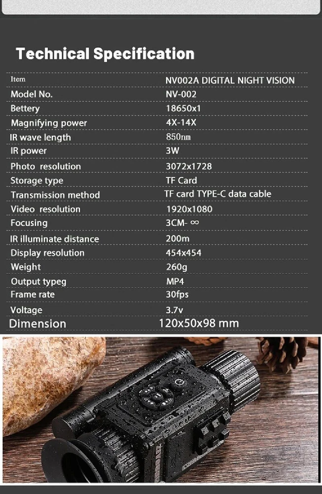 NV002 Night Vision Rifle Scope 4X - 14X Magnification With Crosshair Reticle